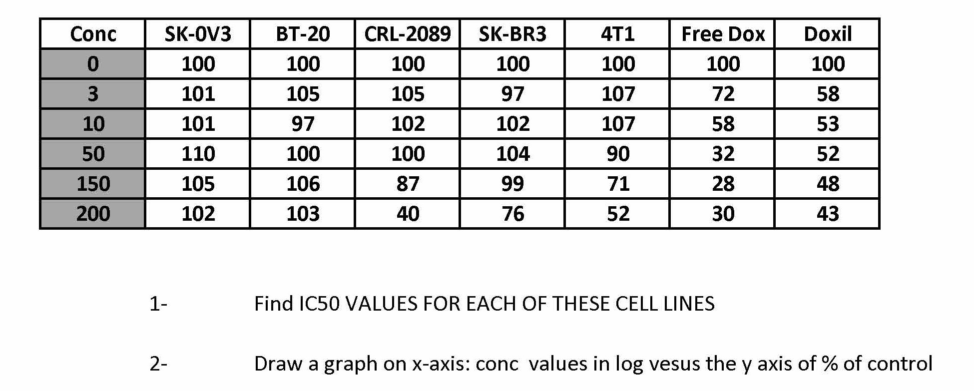 Conc SK-0V3 BT-20 CRL-2089 SK-BR3 4T1 Free Dox Doxil 100 1...