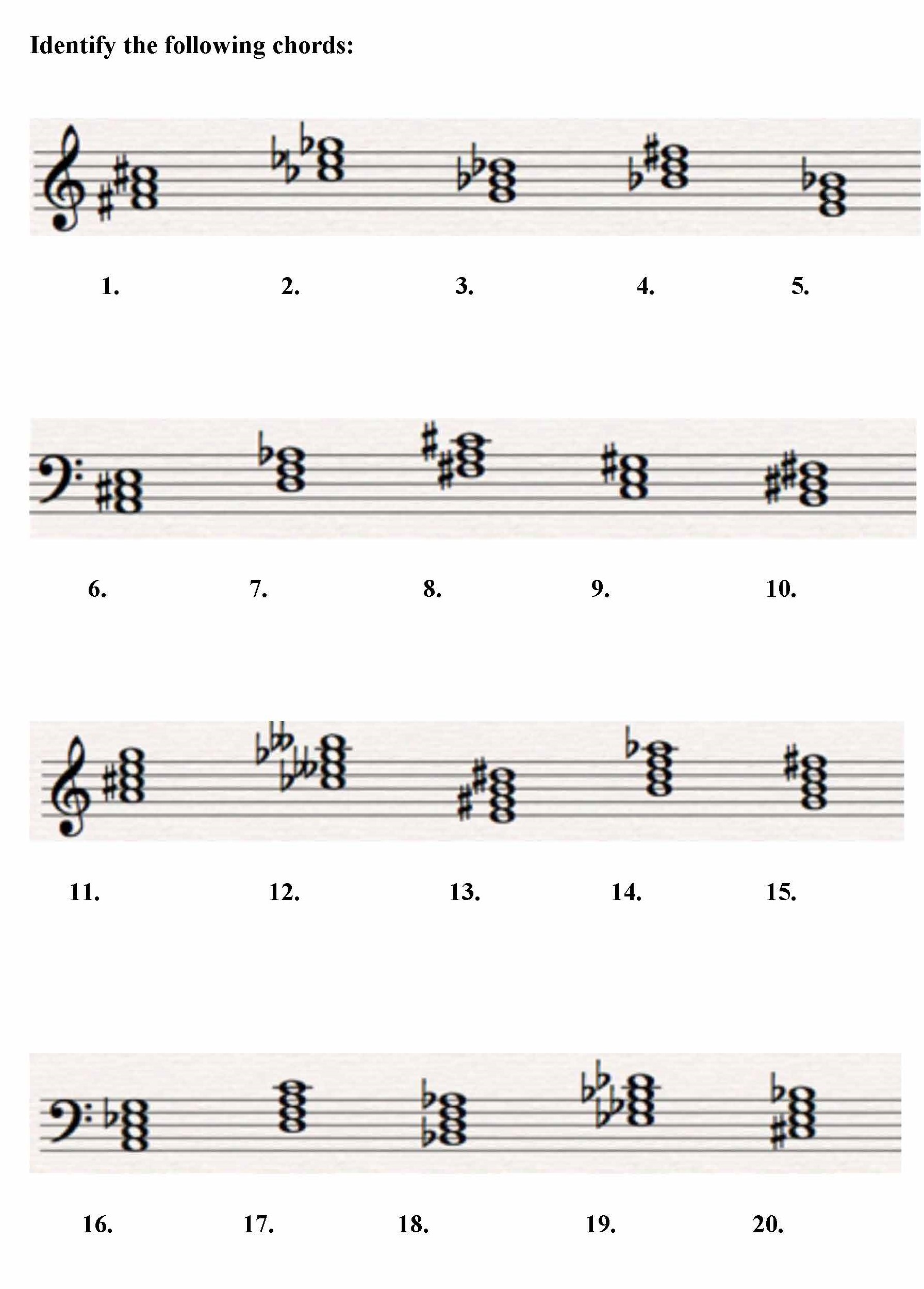 Identify the following chords: 1. 2. 3. 4. 5. 6. 7. 8. 9. 10....