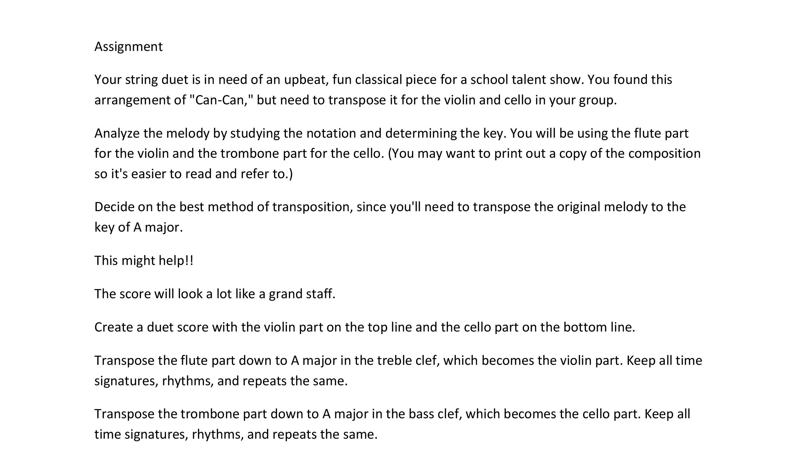 Assignment Your string duet is in need of an upbeat, fun classical...