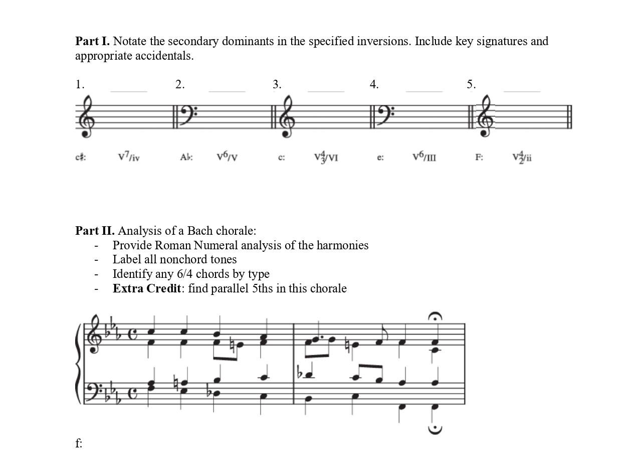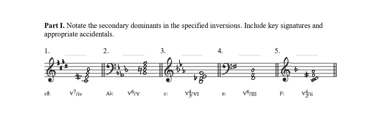 Part I. Notate the secondary dominants in the specified inversions....