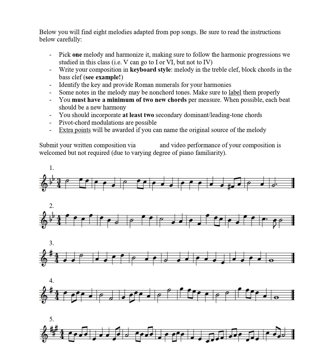 Below you will find eight melodies adapted from pop songs. Be sure...