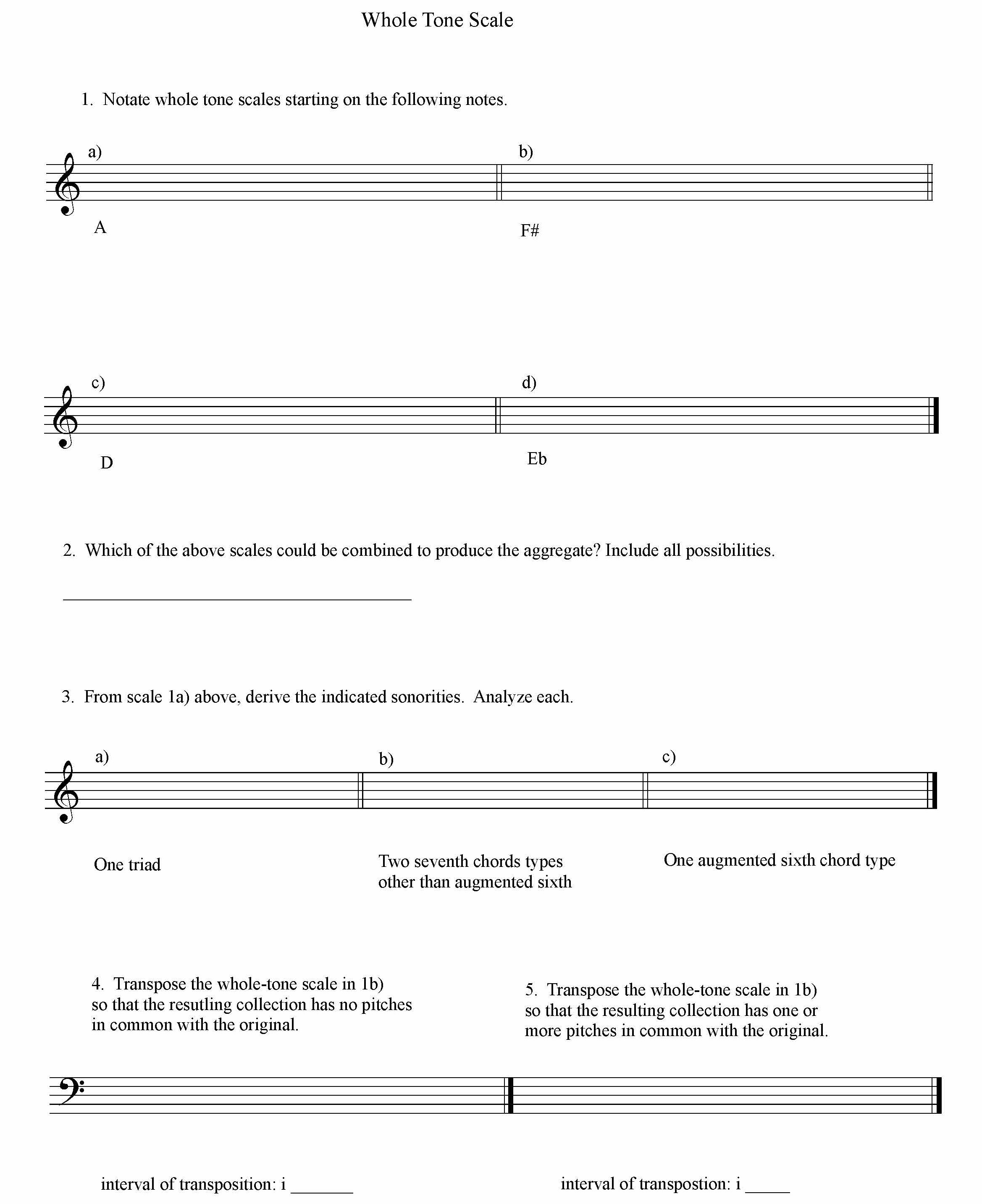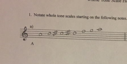 Whole Tone Scale 1. Notate whole tone scales starting on the follo...
