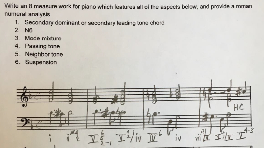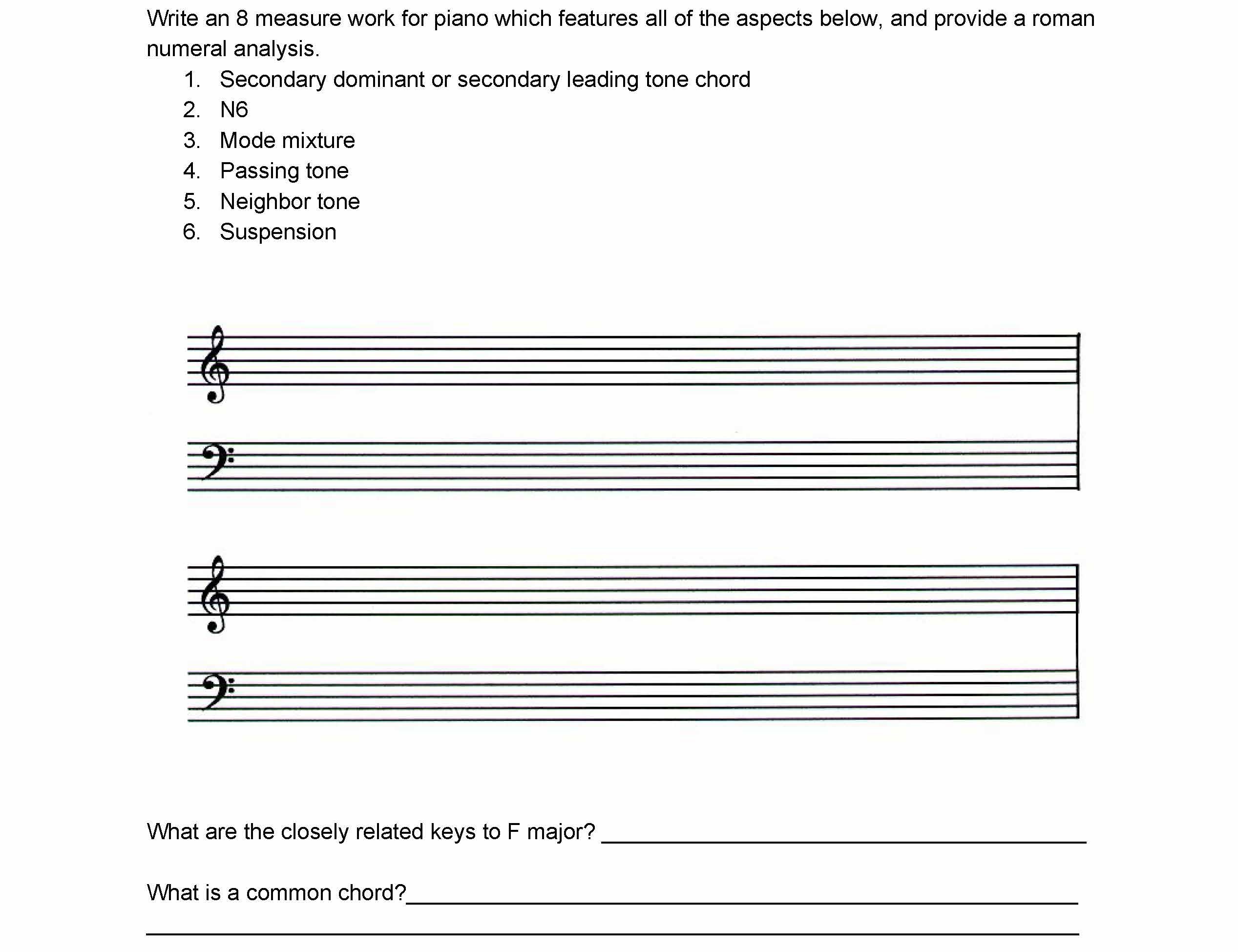 Write an 8 measure work for pianowhich features all of the aspects ...