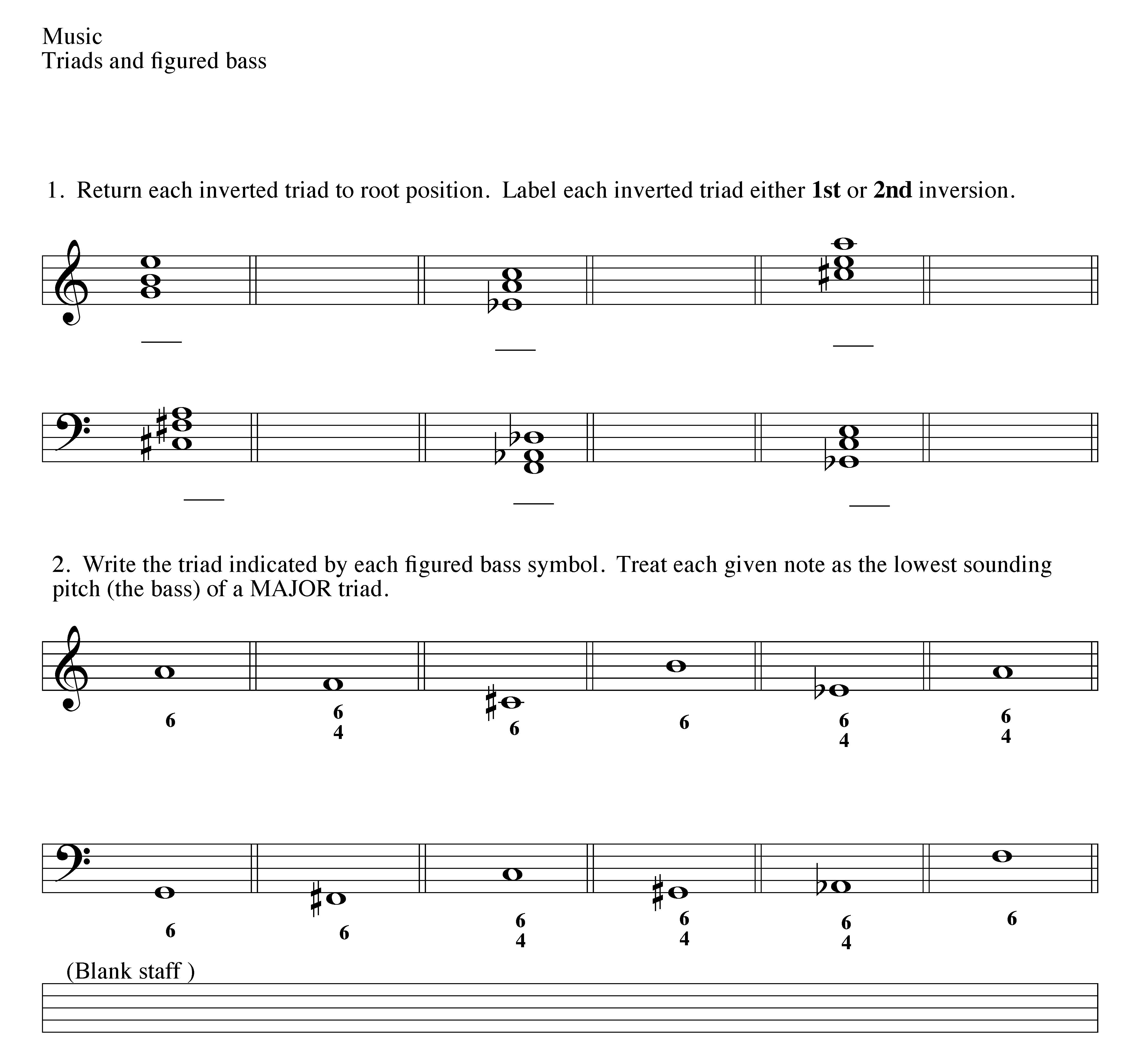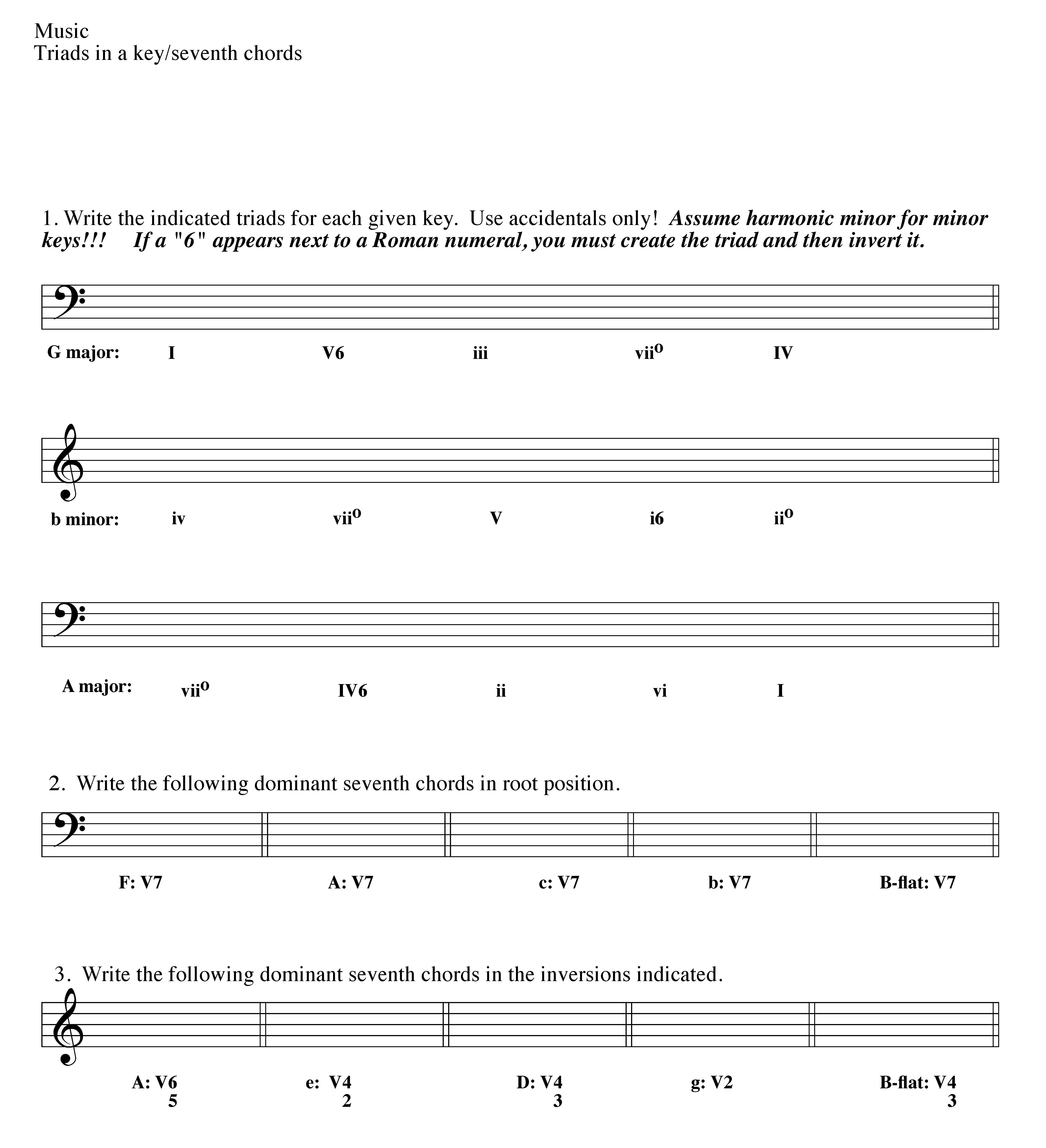 Music Triads in a key/seventh chords 1. Write the indicated triad...