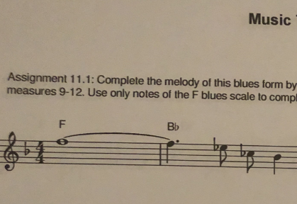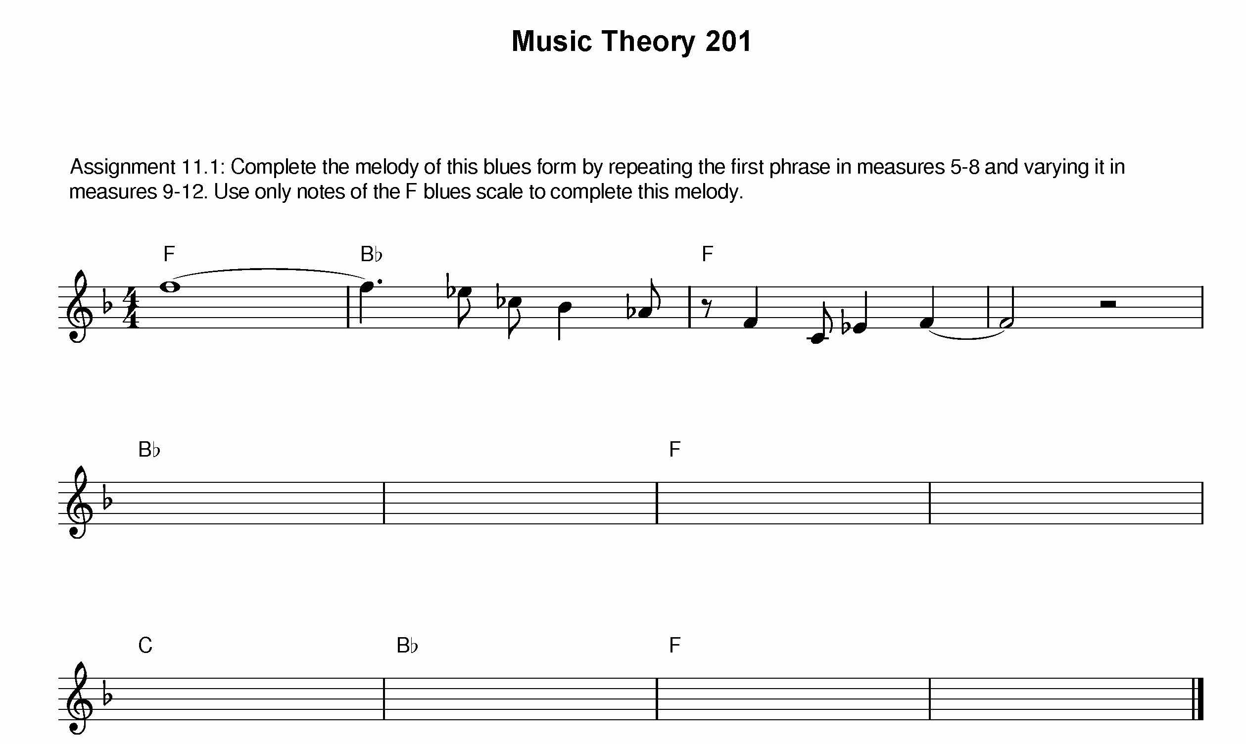 Music Theory 201 Assignment 11.1: Complete the melody of this blue...