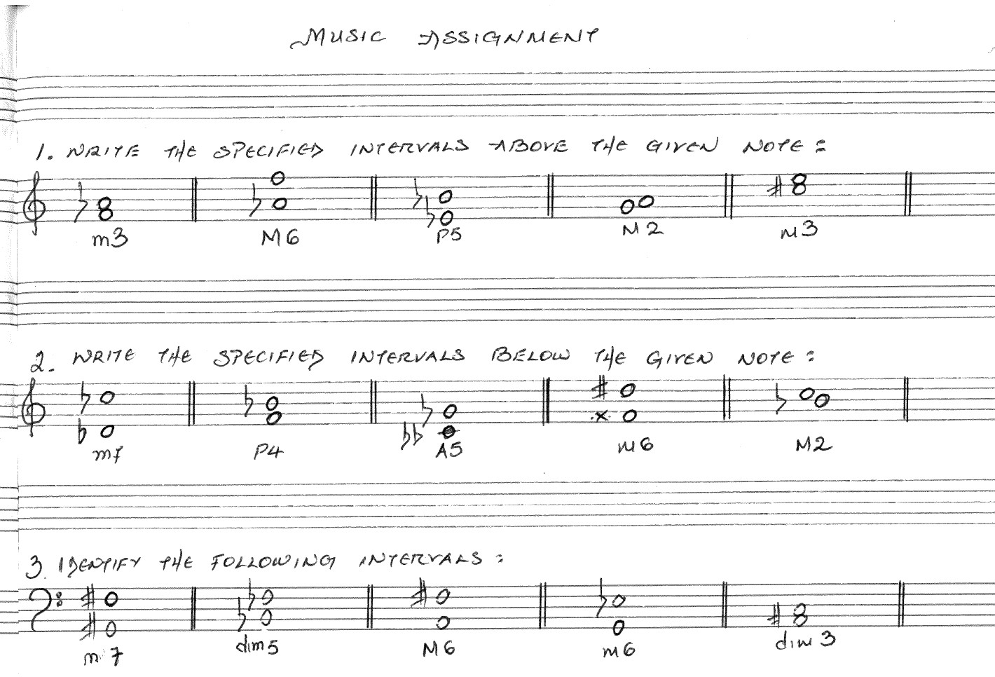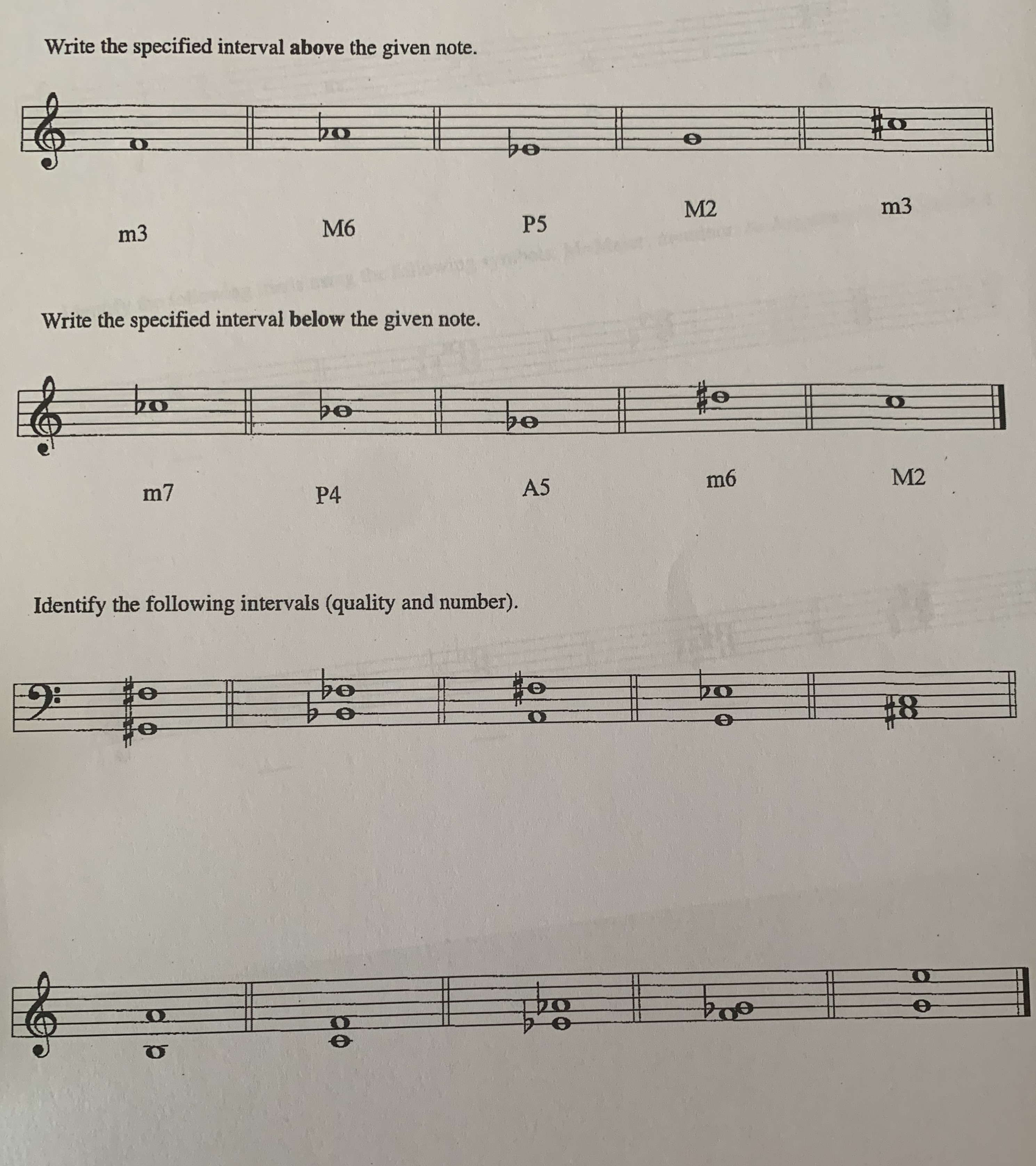 Write the specified interval above the given note. M2 m3 m3 M6...