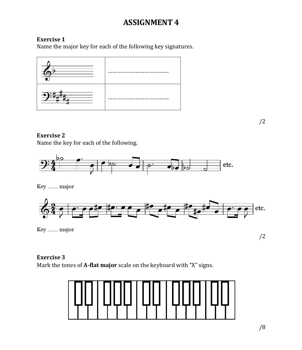 ASSIGNMENT 4 Exercise 1 Name the major key for each of the follow...