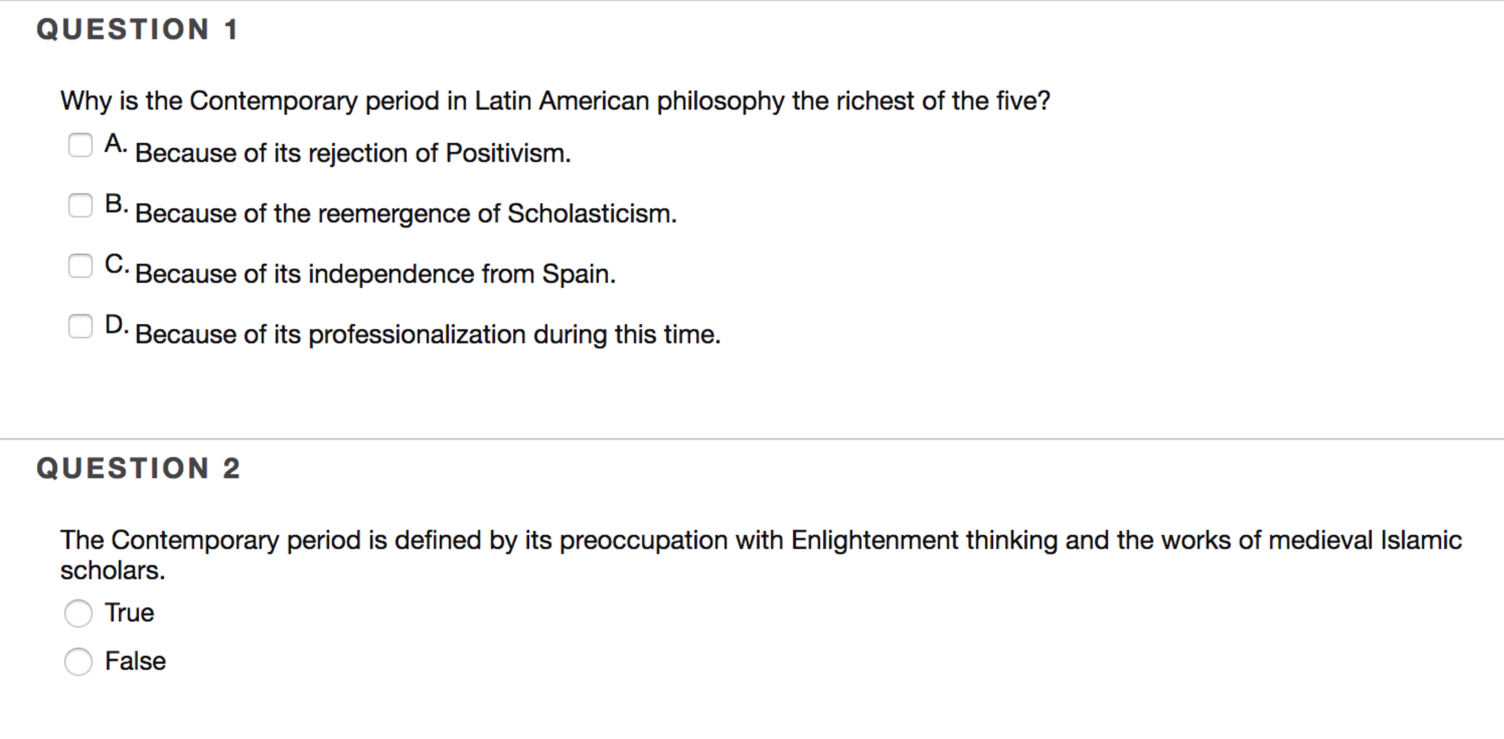 QUESTION 1 Why is the Contemporary period in Latin American philos...