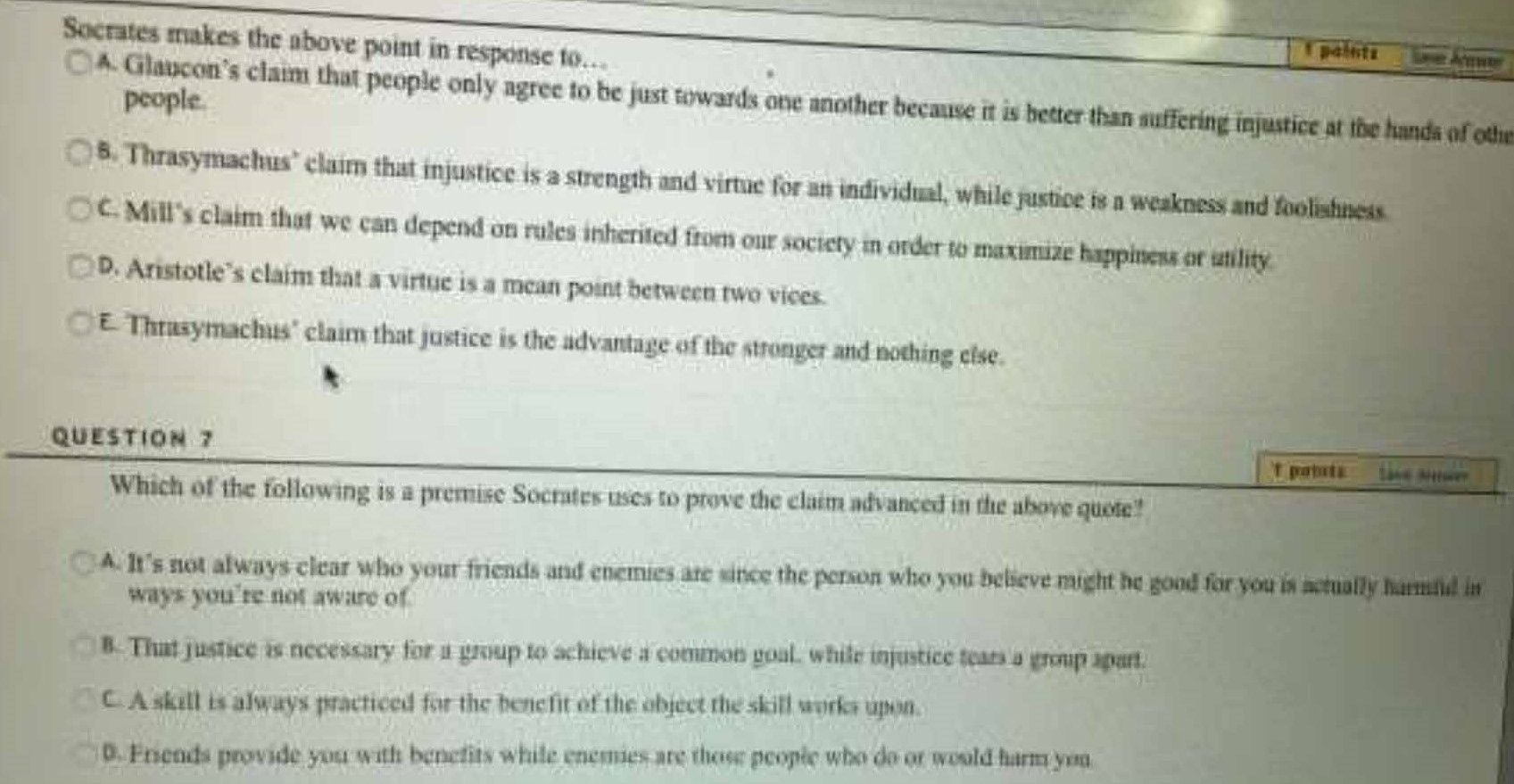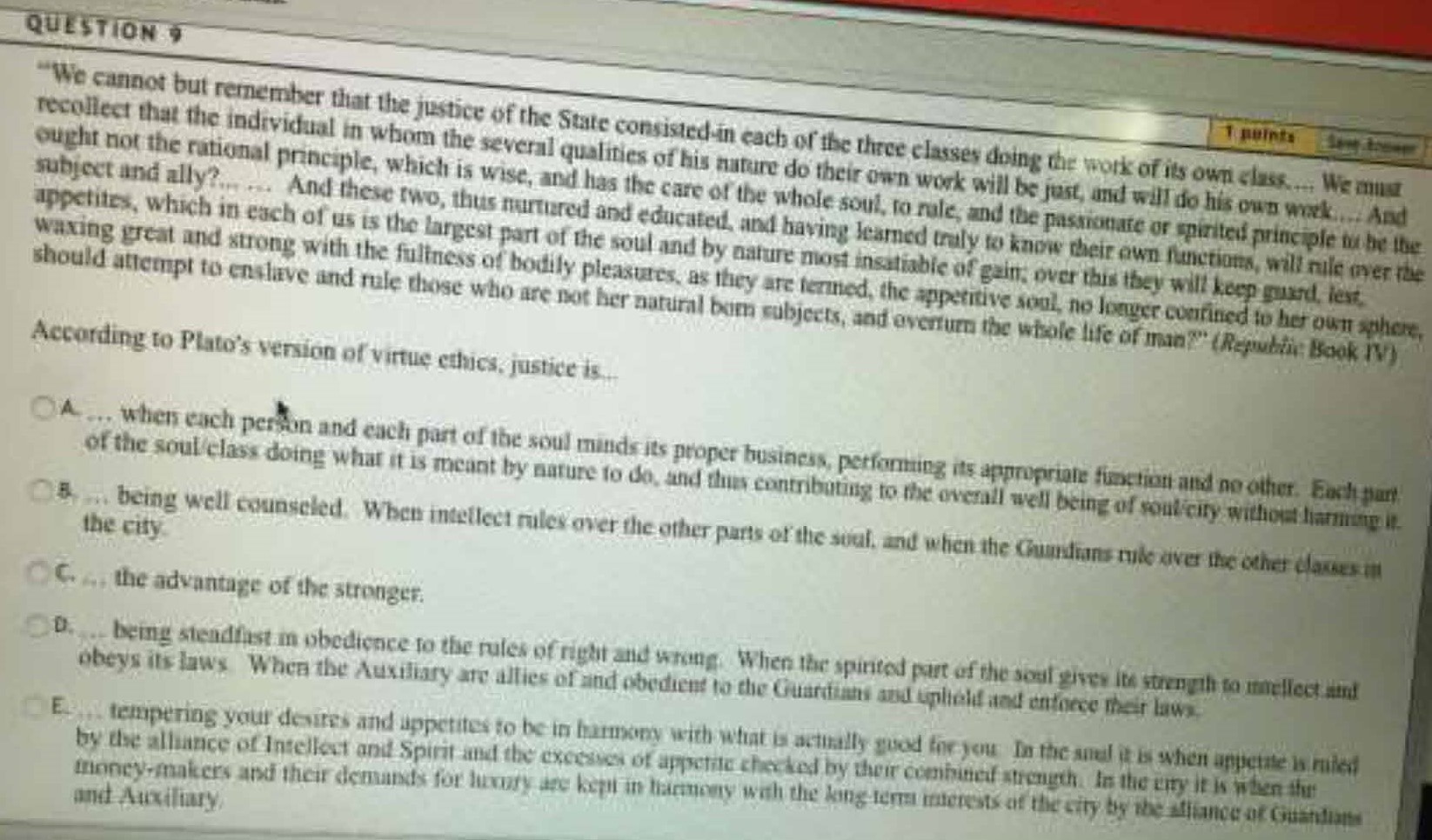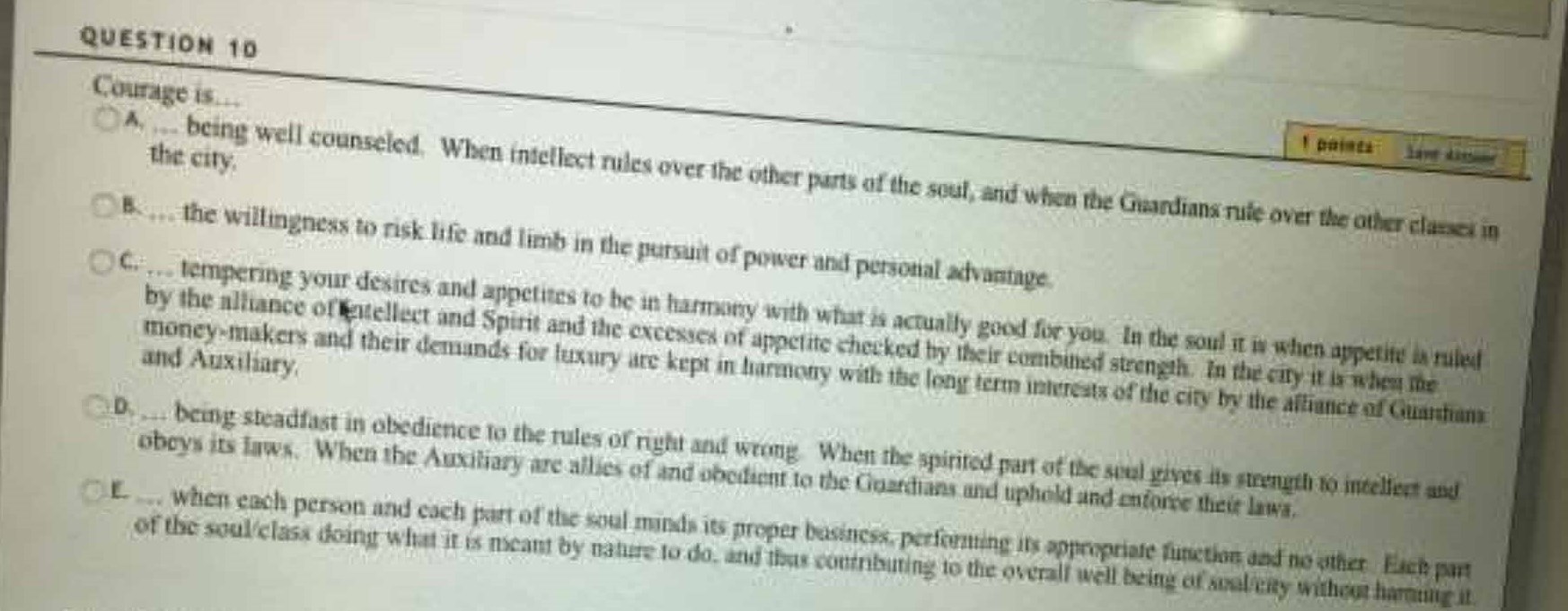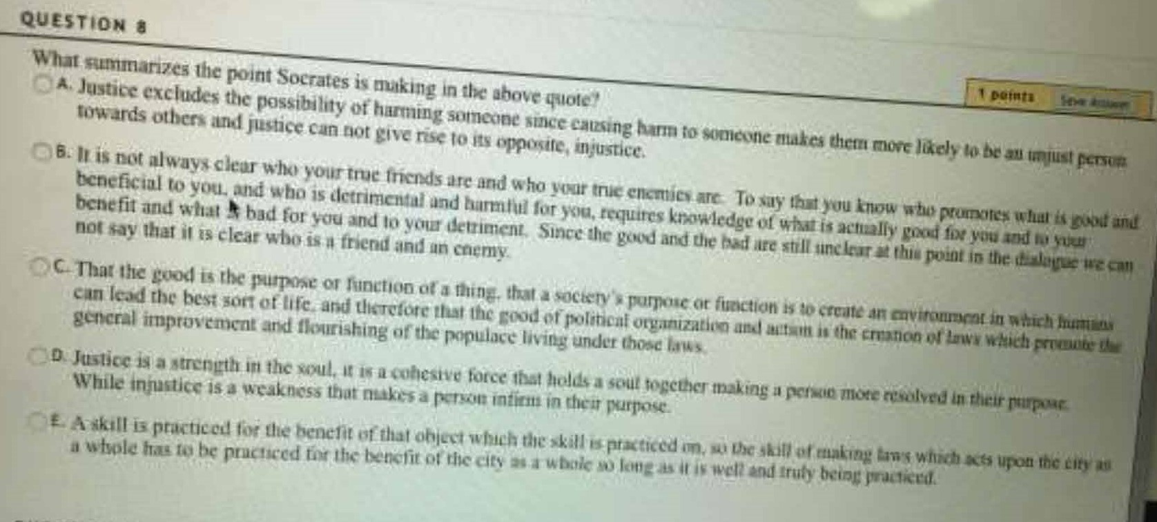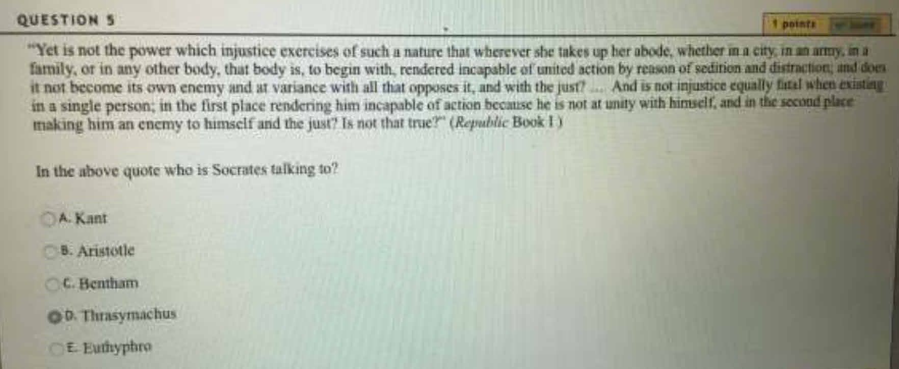 QUESTION 5 1 points - "Yet is not the power which injustice...