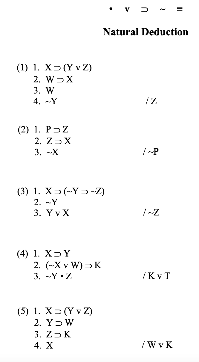• v ~ ≡ Natural Deduction (1) 1. X (Y v Z) 2. W X ...