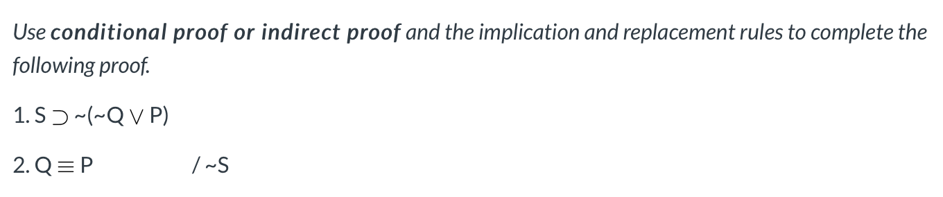 Use conditional proof or indirect proof and the implication and rep...