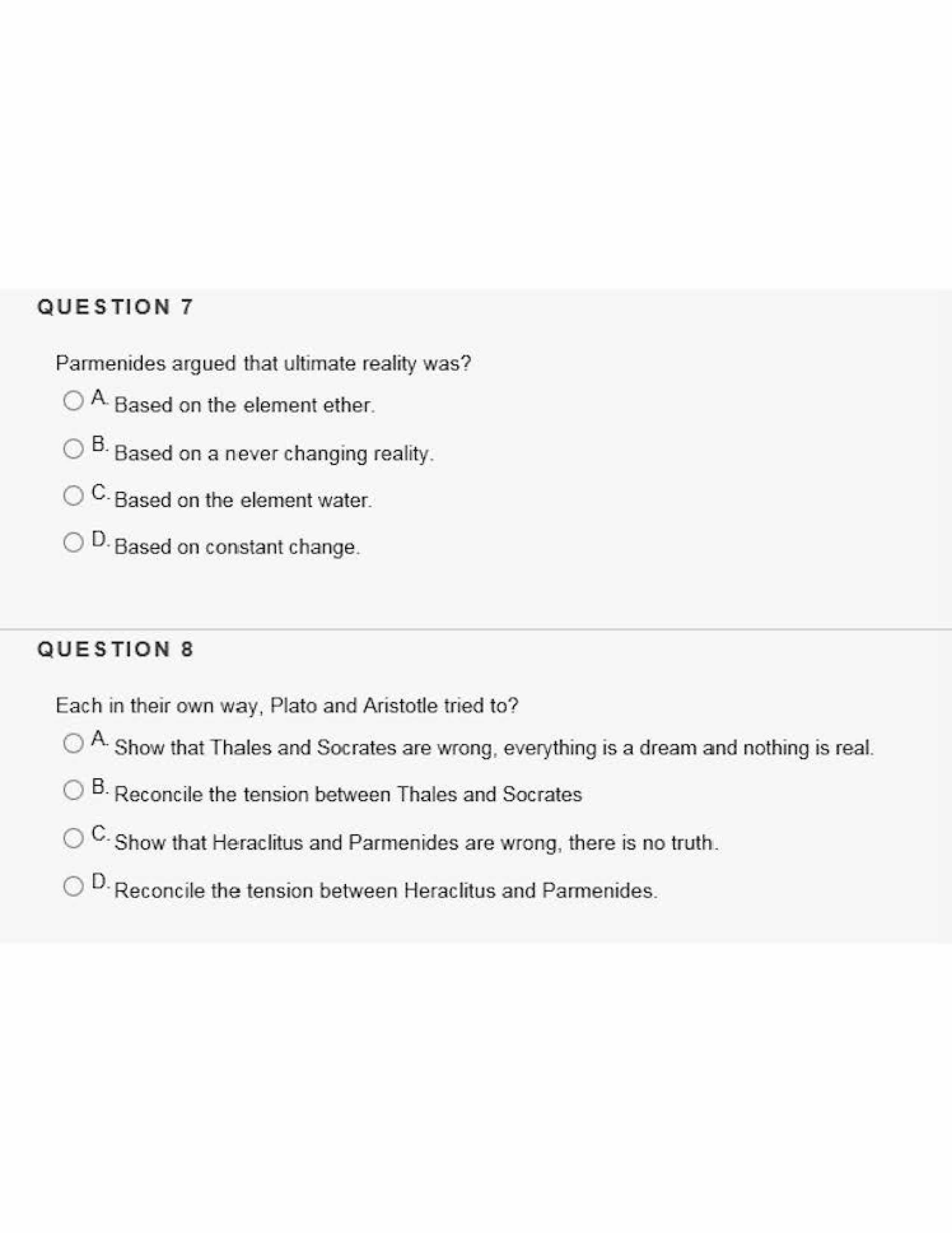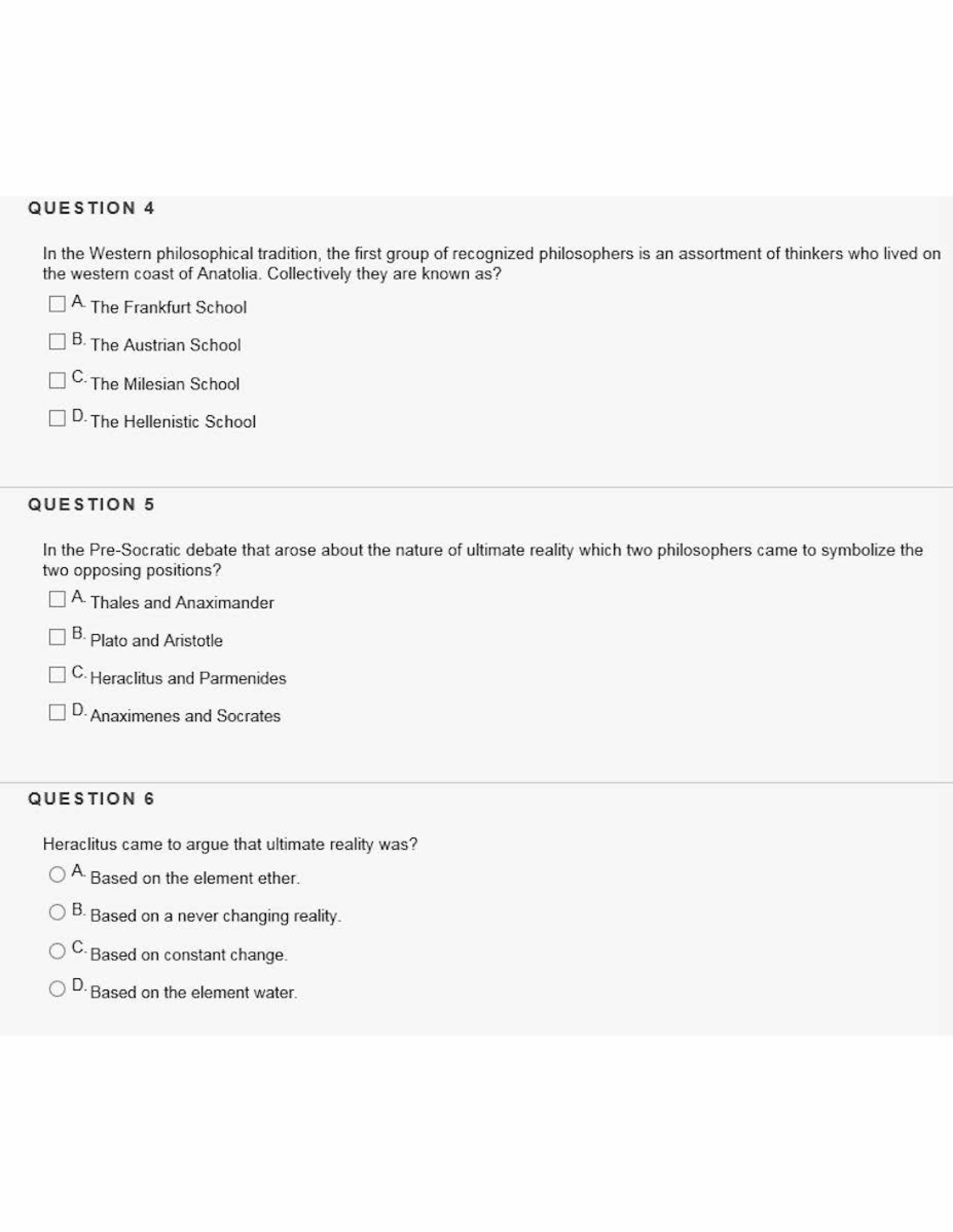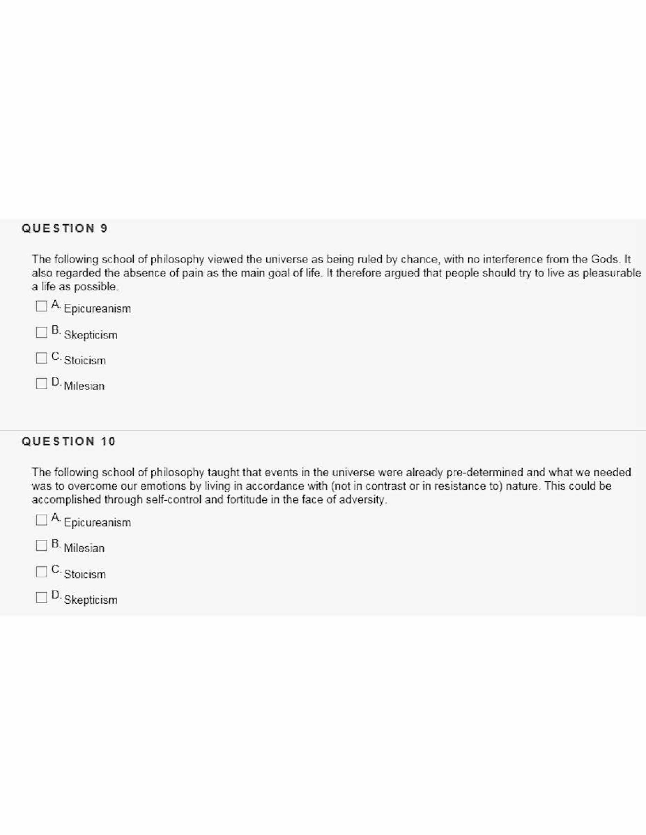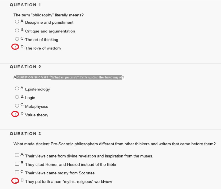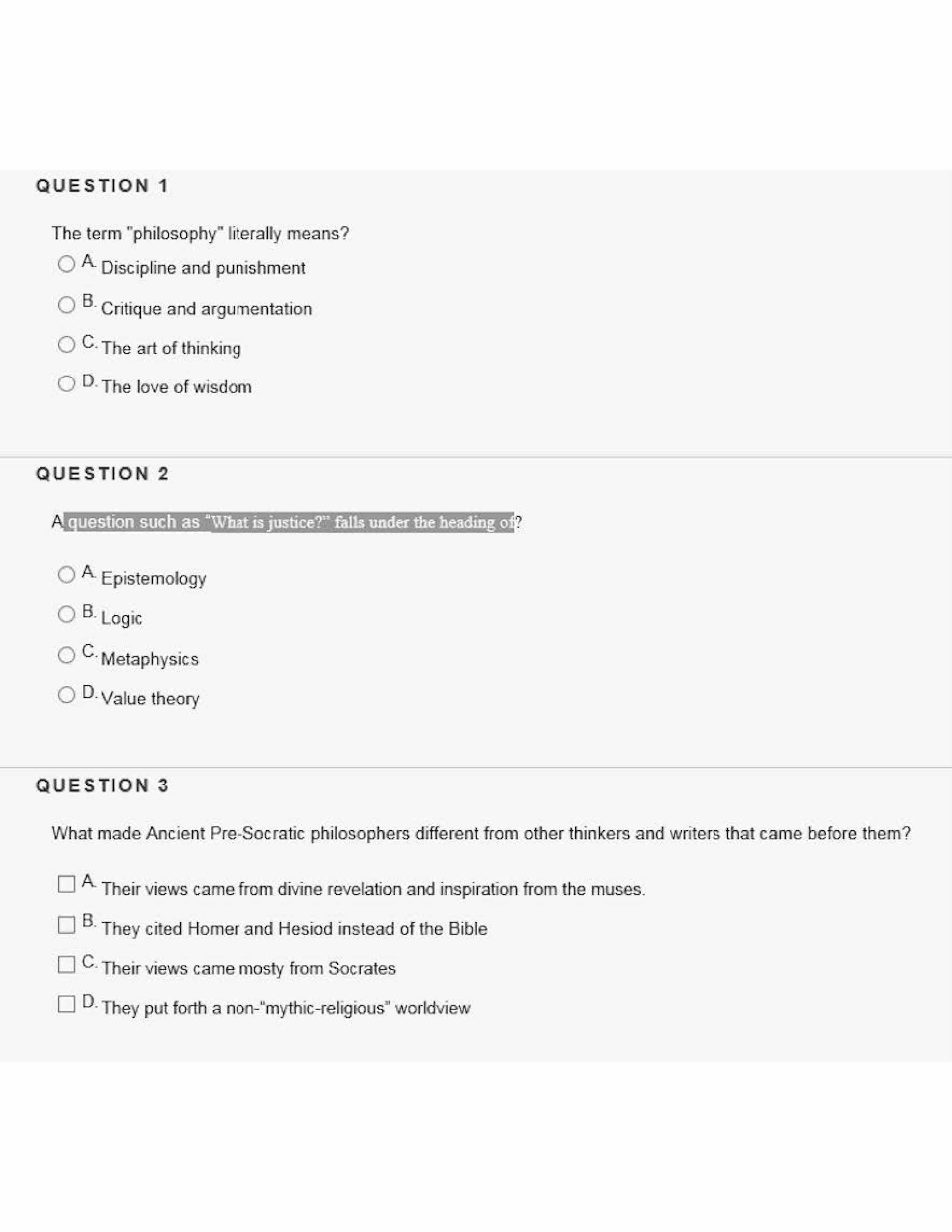 Q U ESTION 1 The term "philosophy" literally means? O A...