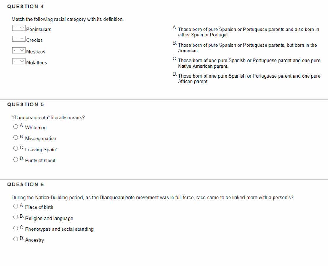 QUESTION 1 "Limpieza de sangre" literally means? O A. L...