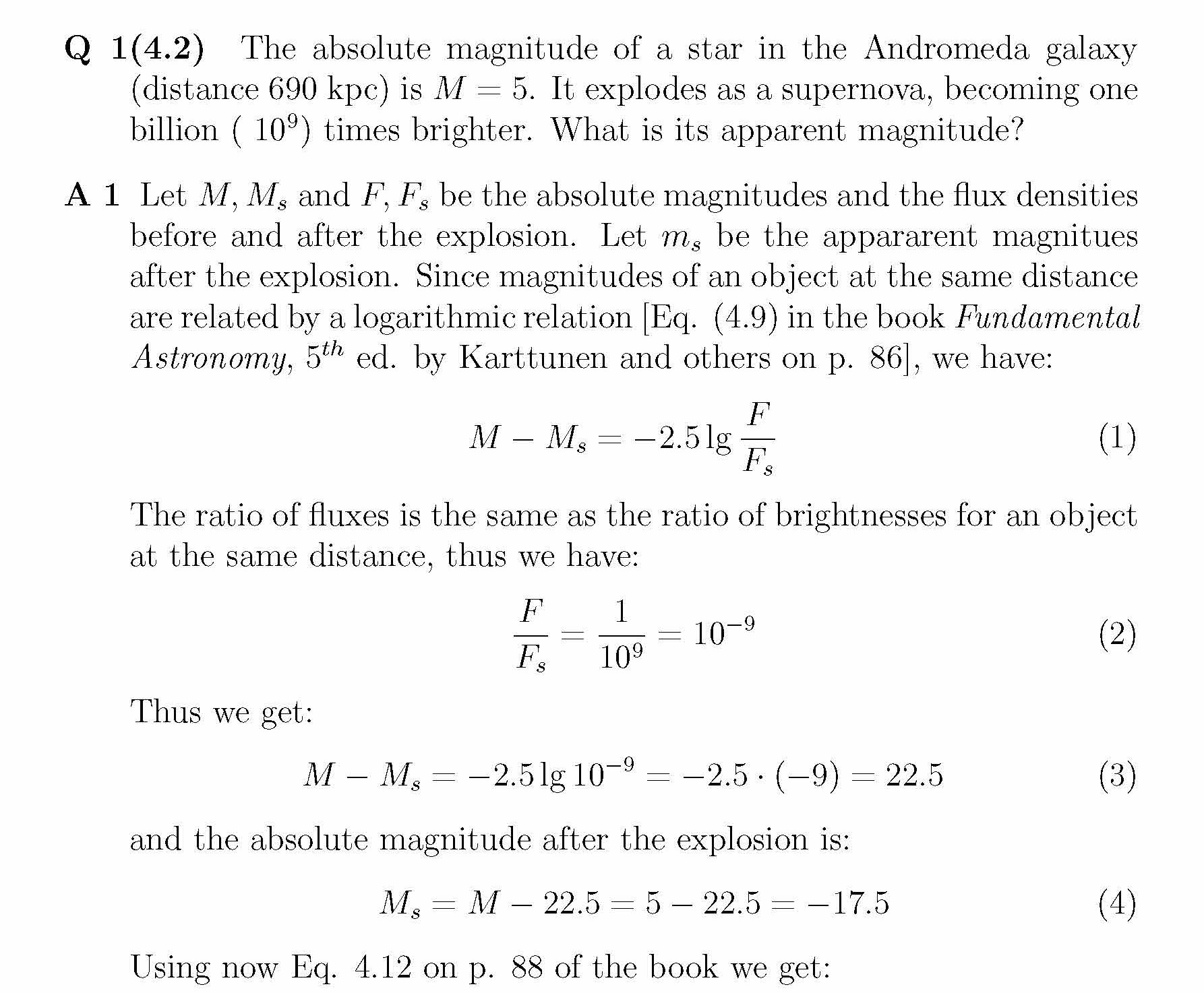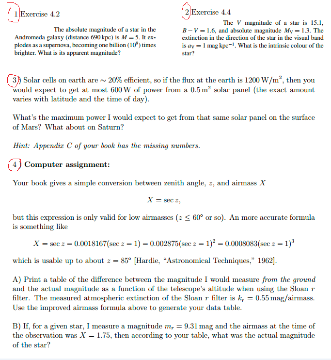 1 Exercise 4.2 2 Exercise 4.4 The V magnitude of a star is 15.1...
