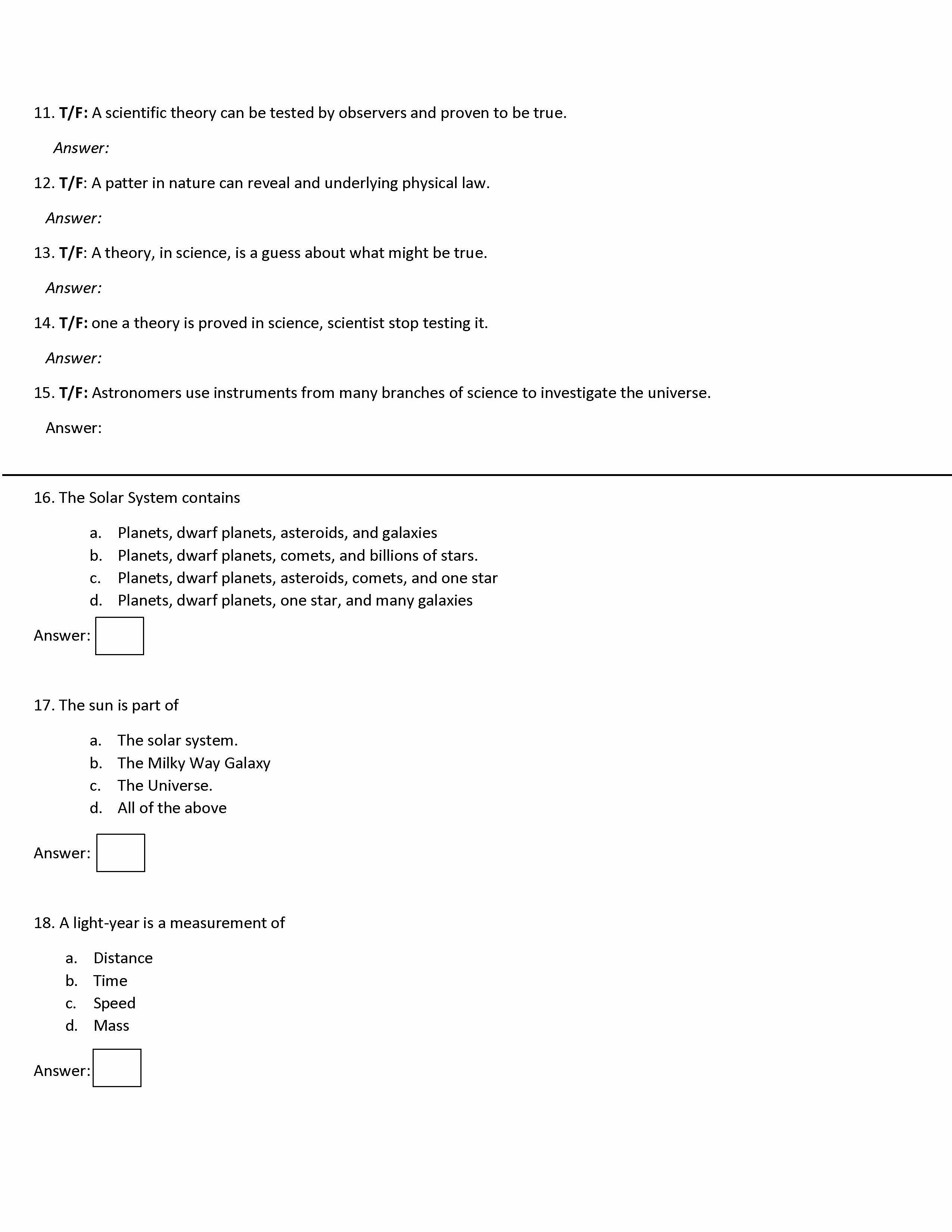 11. T/F: scientific theory canbe tested by observers and proven to ...