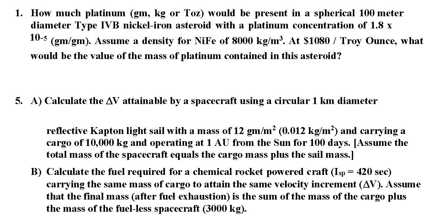 1.How much platinum (gm, kg or Toz) would be present in a spherical...