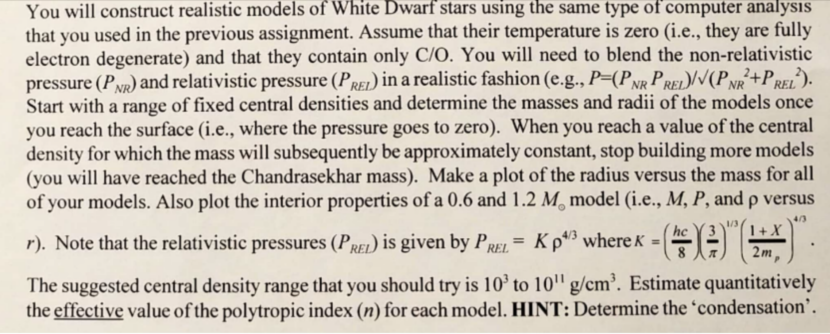 You will construct realistic models of White Dwarf stars using the...