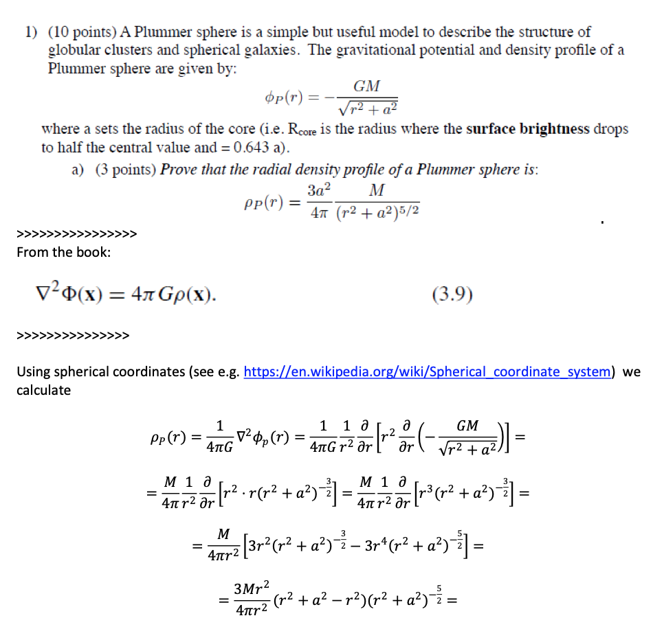 1) (10 points) A Plummer sphere is a simple but useful model to des...