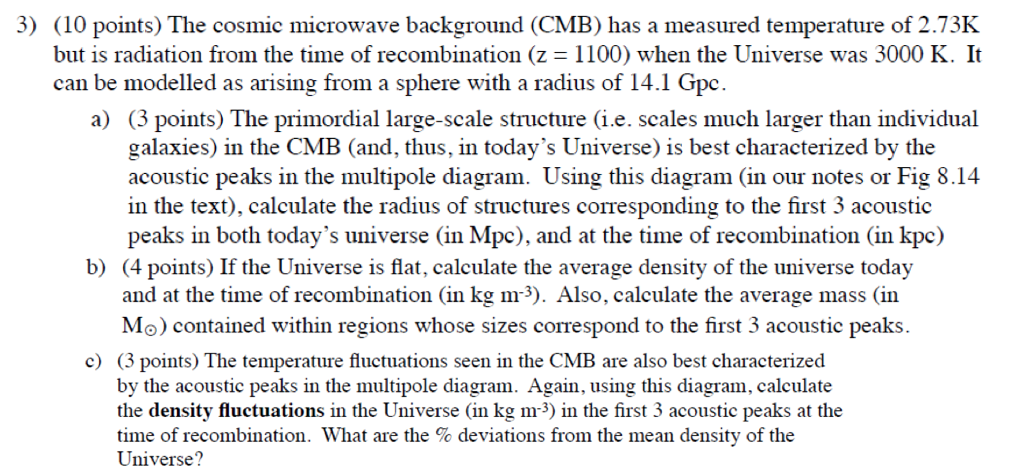 3) (10 points) The cosmic microwave background (CMB) has a measured...