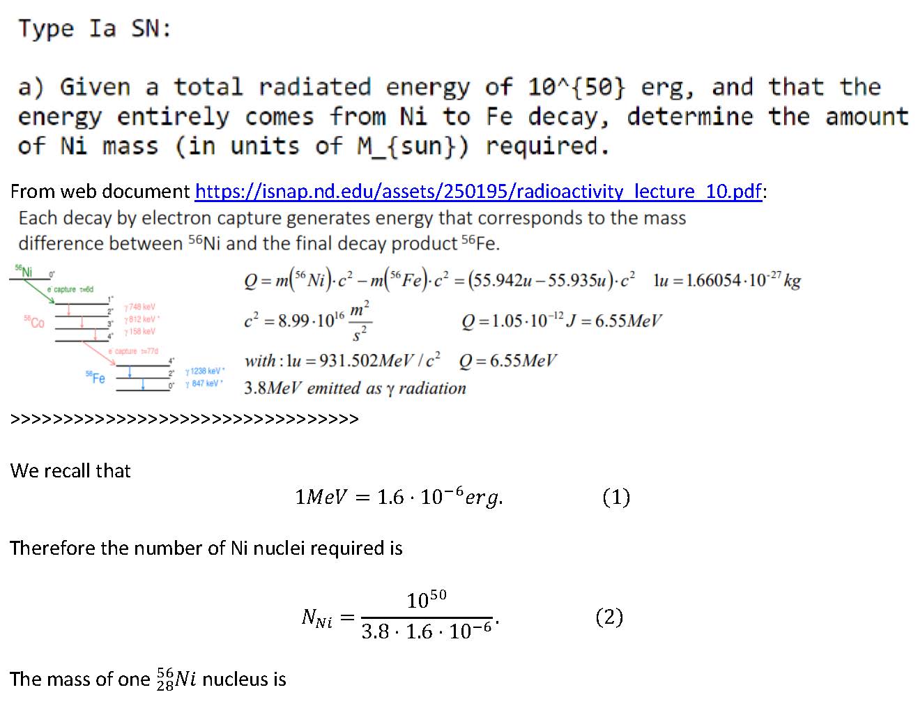 Type la SN: a) Given a total radiated energy of 10^{50} erg, and...