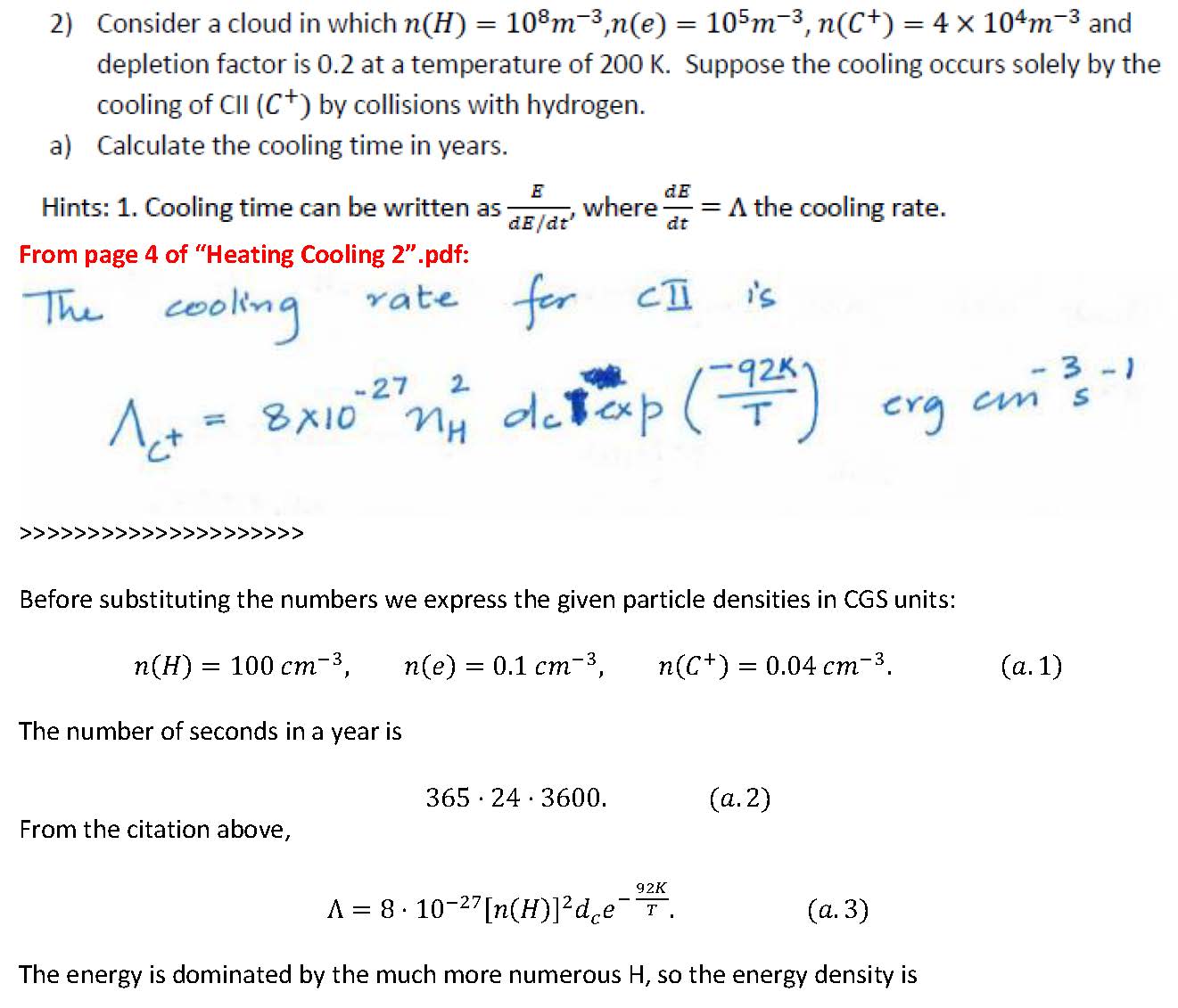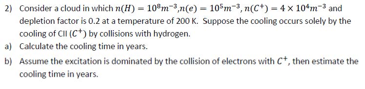 2) Consider a cloud in which n(H) = 108m-3,n(e) = 105m-³, = dep...