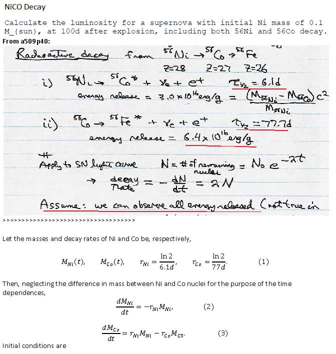 NiCo Decay Calculate the luminosity for a supernova with initial...