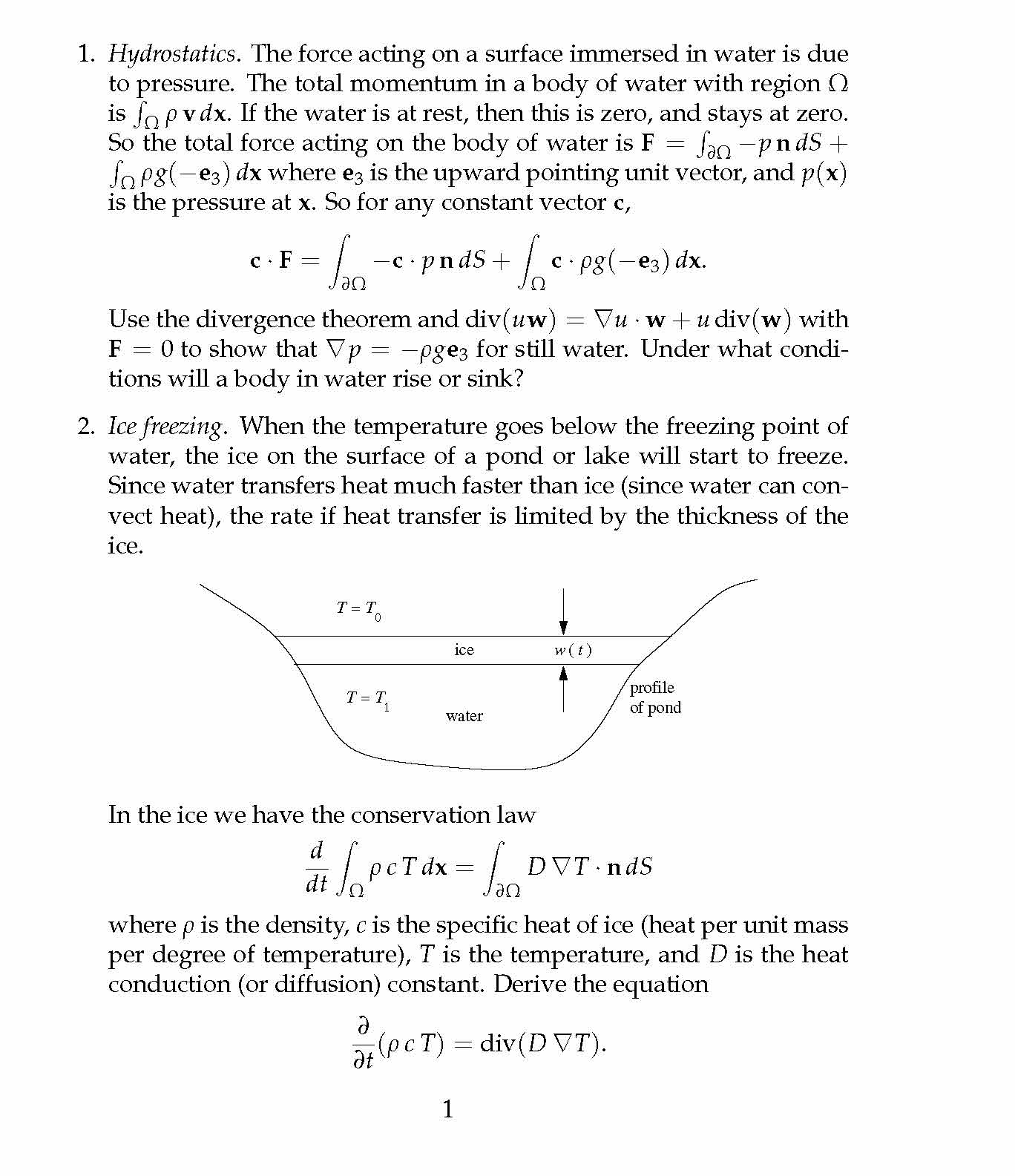 1. Hydrostatics. The force acting on surface immersed in water is...