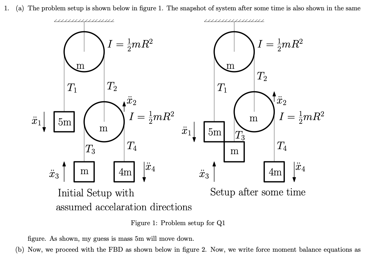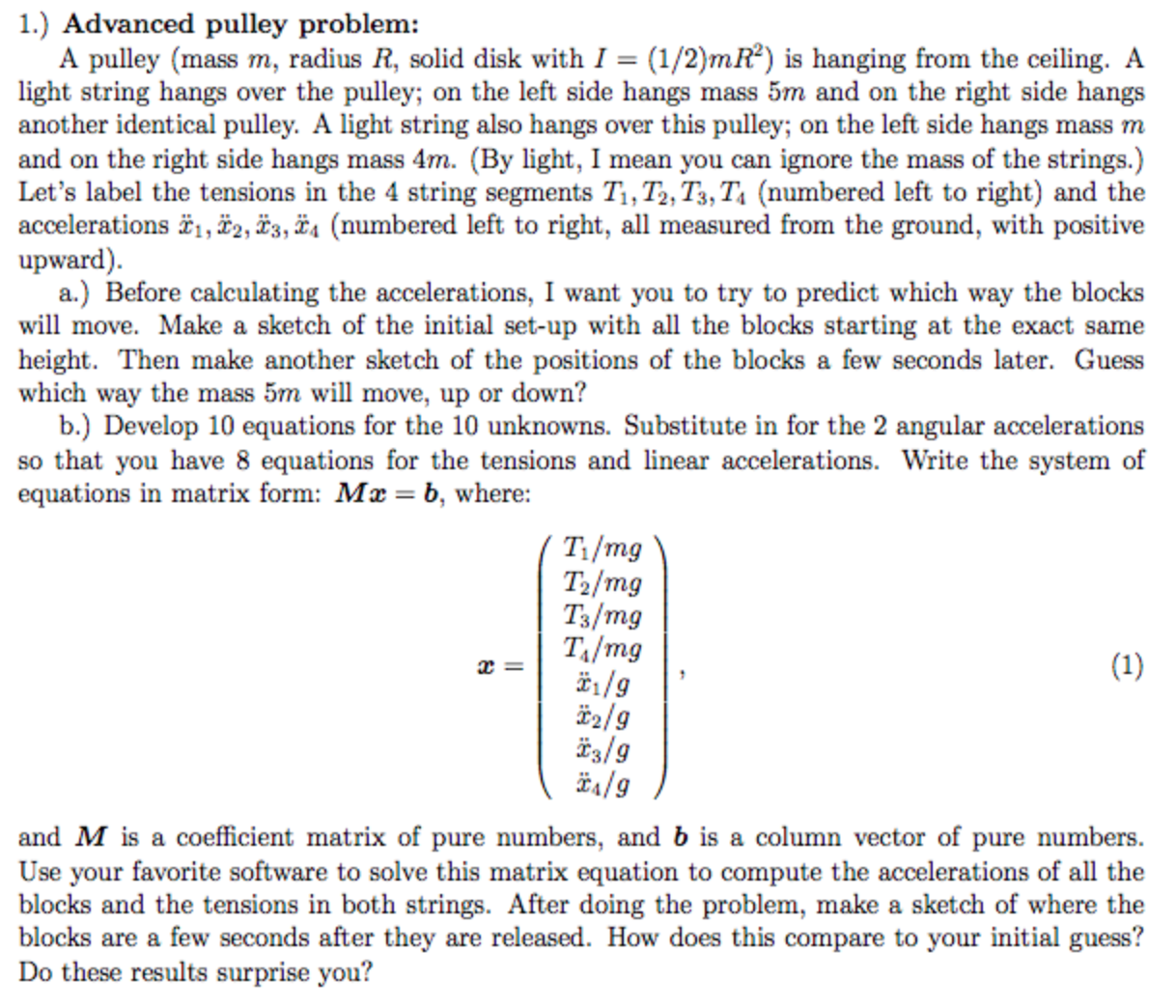 1.) Advanced pulley problem: A pulley (mass m, radius R, solid dis...