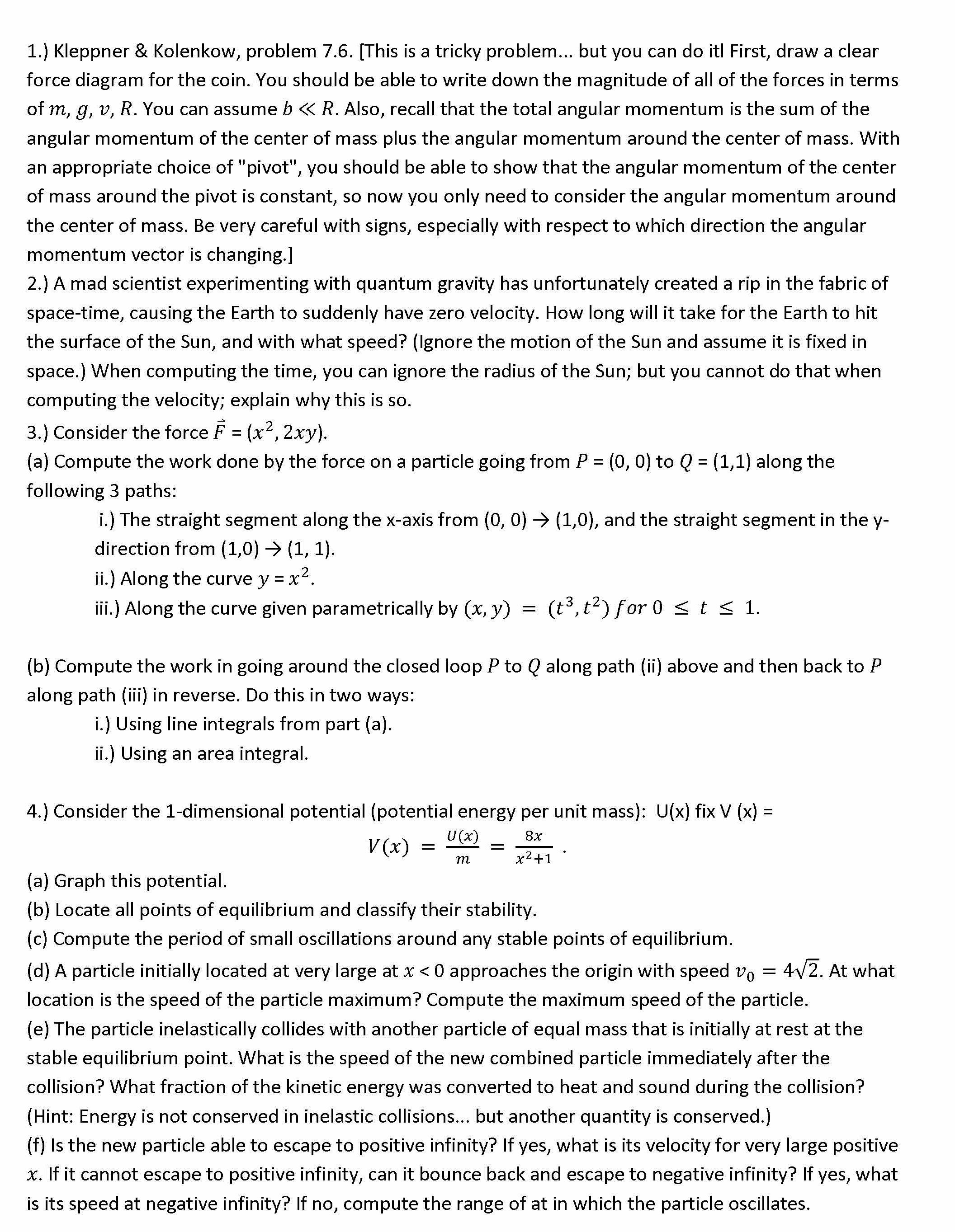 1.) Kleppner & Kolenkow, problem 7.6. [This is a tricky problem...