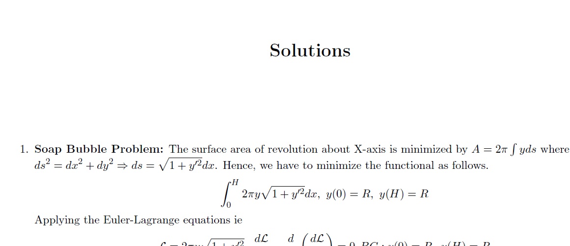 1.) The Soap Bubble Problem: Consider a curve ð‘¦(ð‘¥) ...