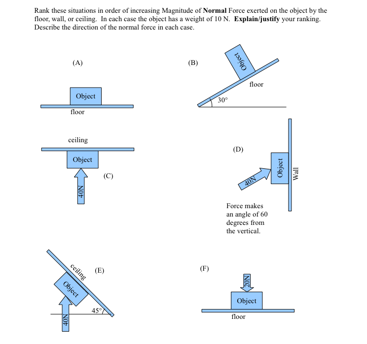 Rank these situations in order of increasing Magnitude of Normal Fo...