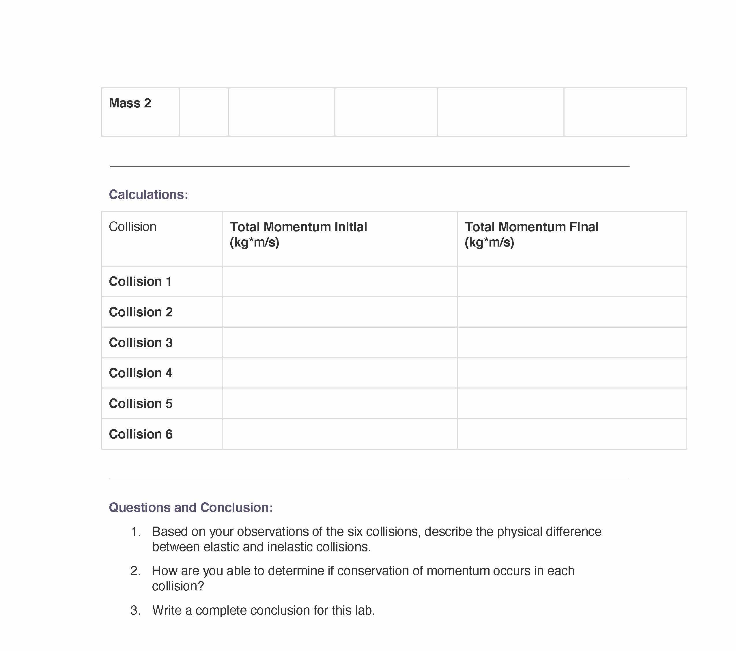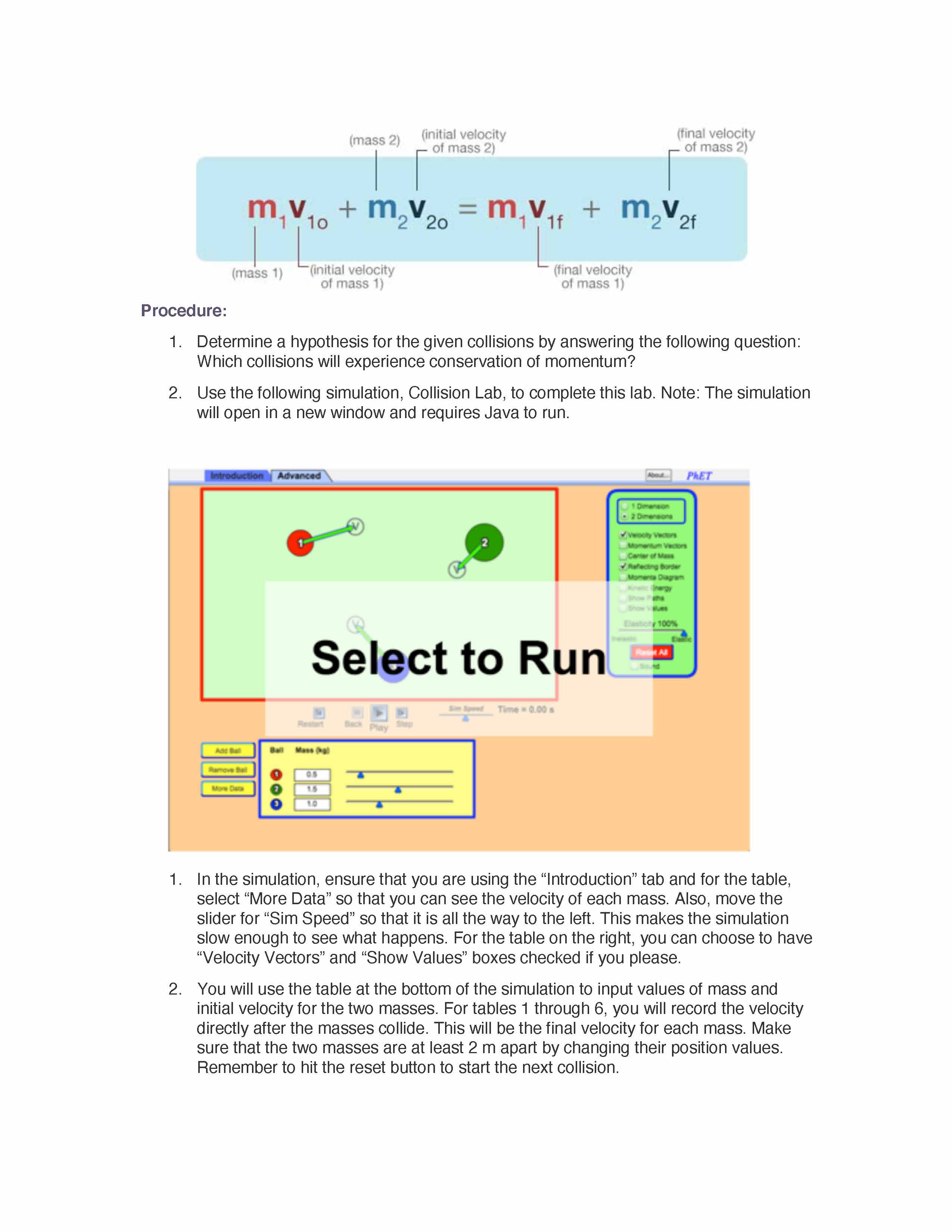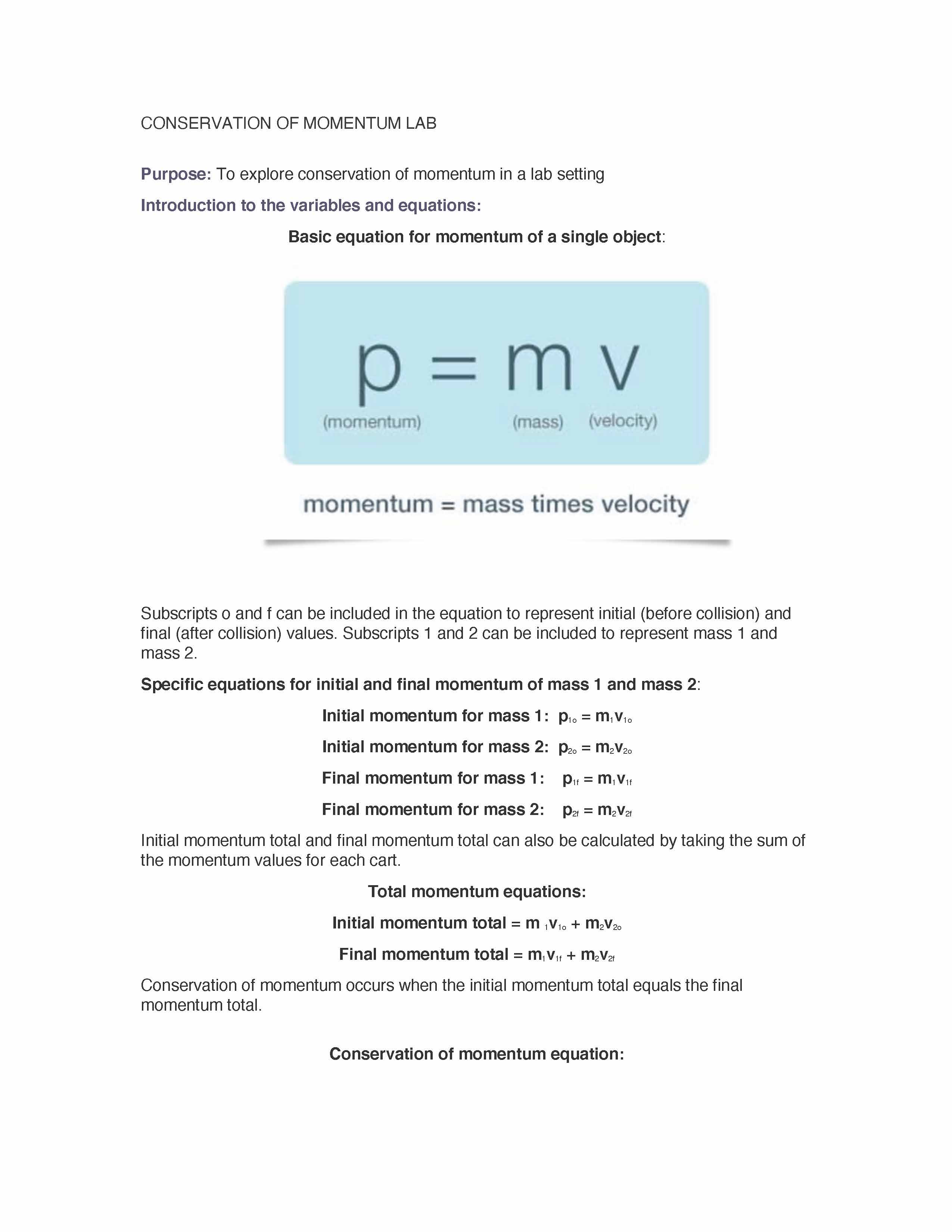 CONSERVATION OF MOMENTUM LAB Purpose: To explore conservation of...