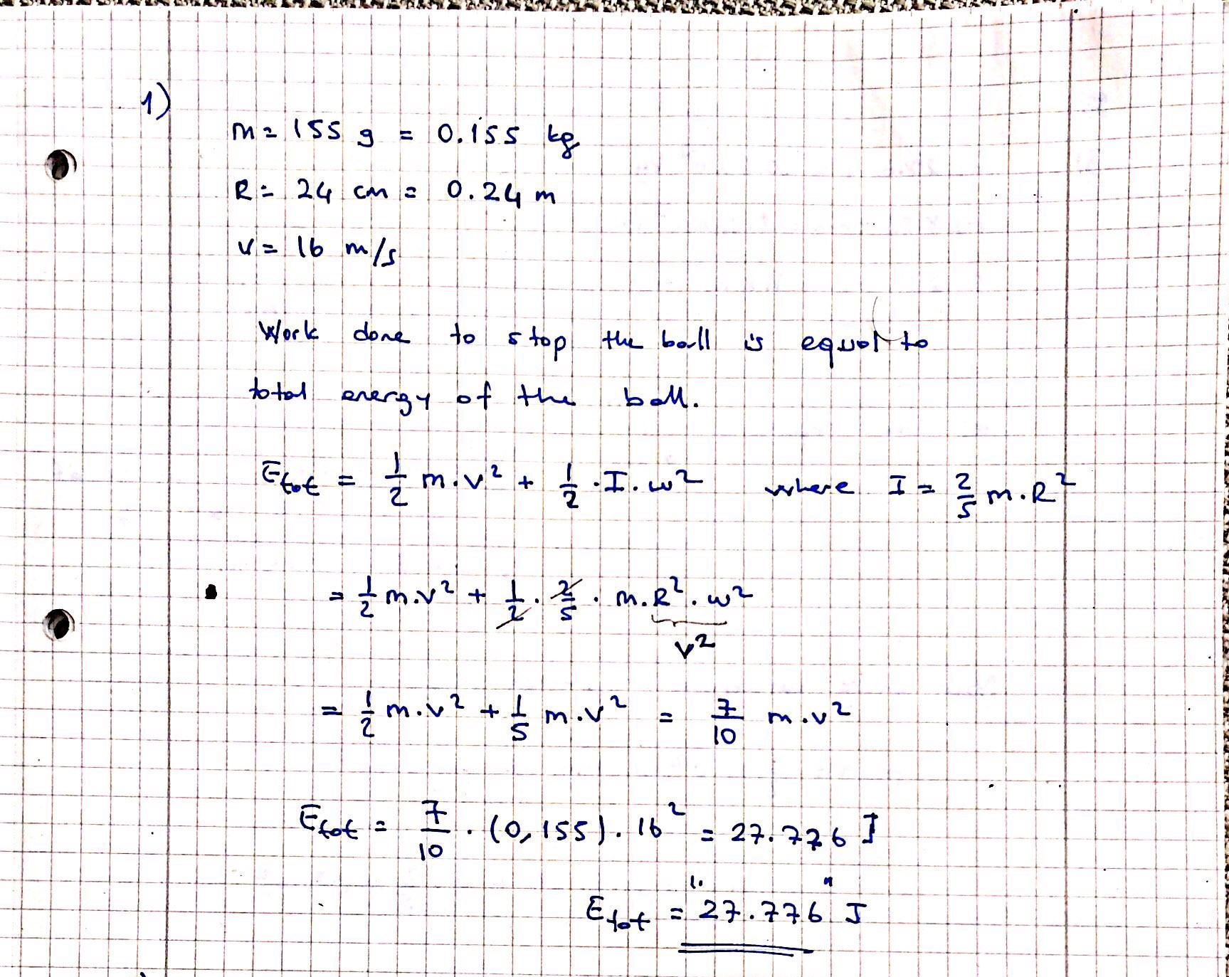 1) A 155 g ball of radius 24 cm rolls along a horizontal floor at a...