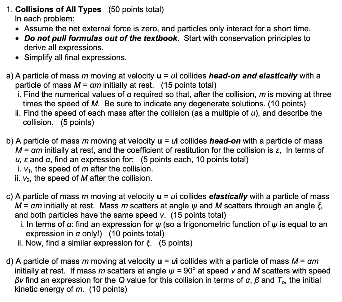 1. Collisions of All Types (50 points total) In each problem: ï‚·...