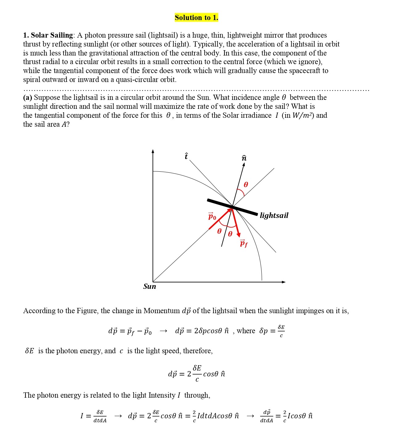 Assignment #5 1. Solar Sailing: A photon pressure sail (lightsai...