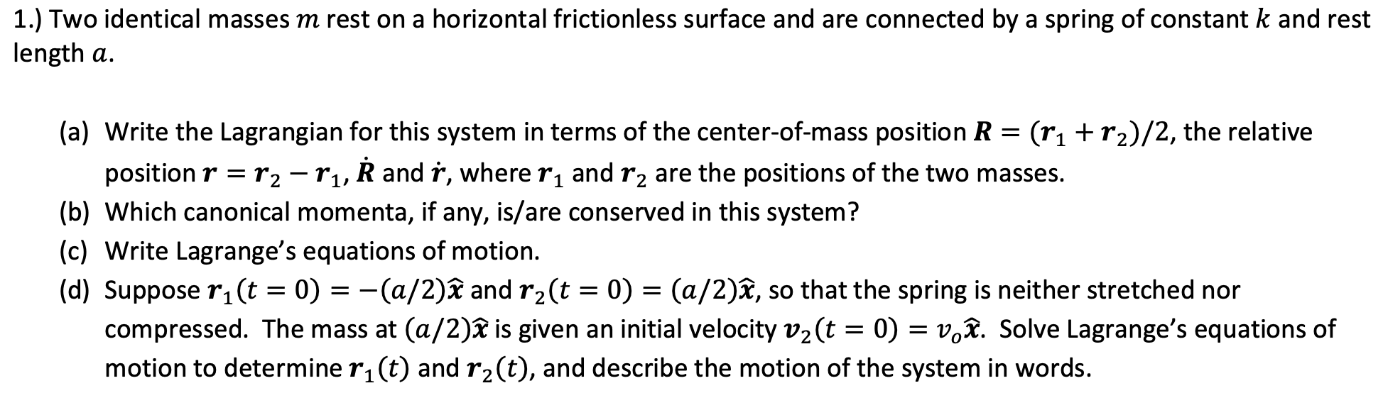 1.) Two identical masses m rest on a horizontal frictionless surfac...