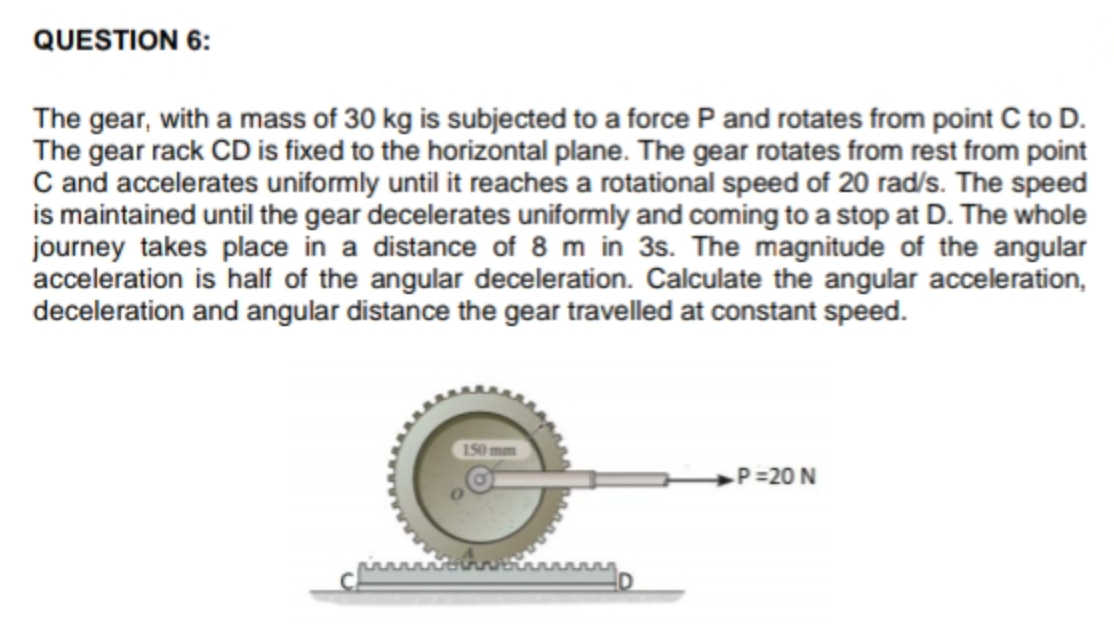 QUESTION 6: The gear, with a mass of 30 kg is subjected to a force...