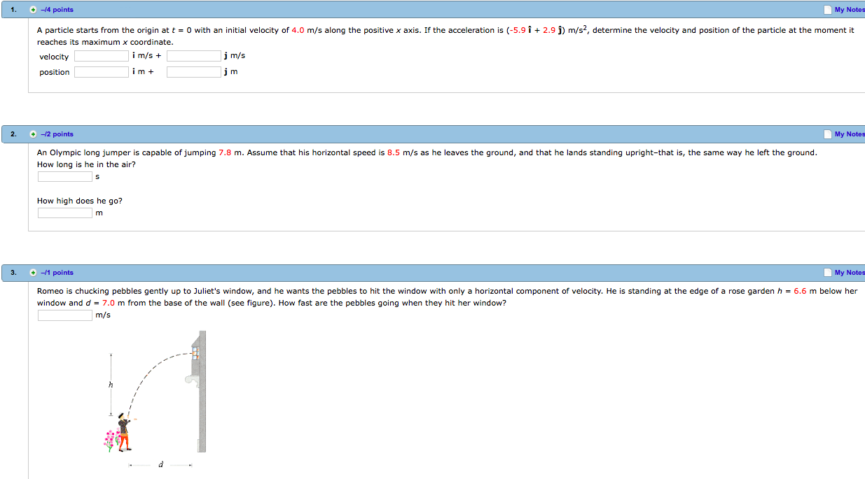 1. -/4 points My Notes A particle starts from the origin at t =...