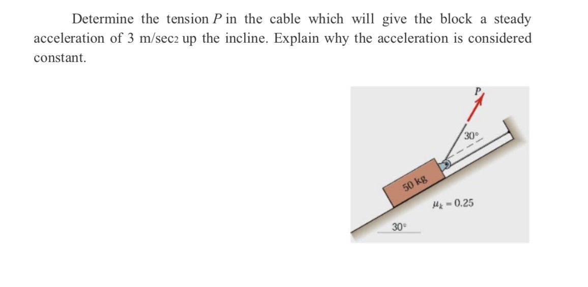 Determine the tension P in the cable which will give the block a st...