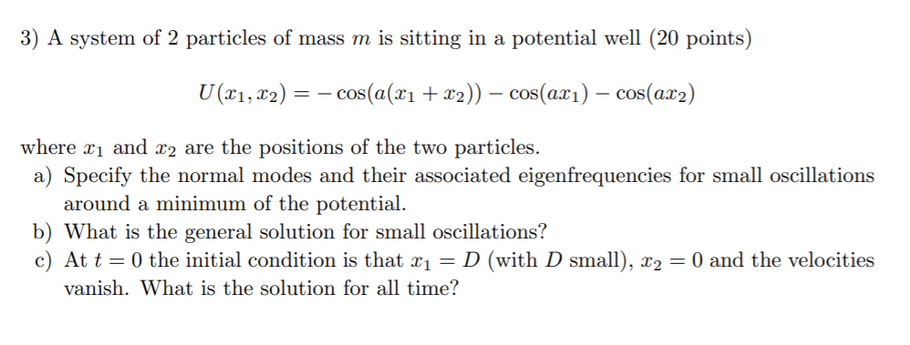 3) A system of 2 particles of mass m is sitting in a potential well...