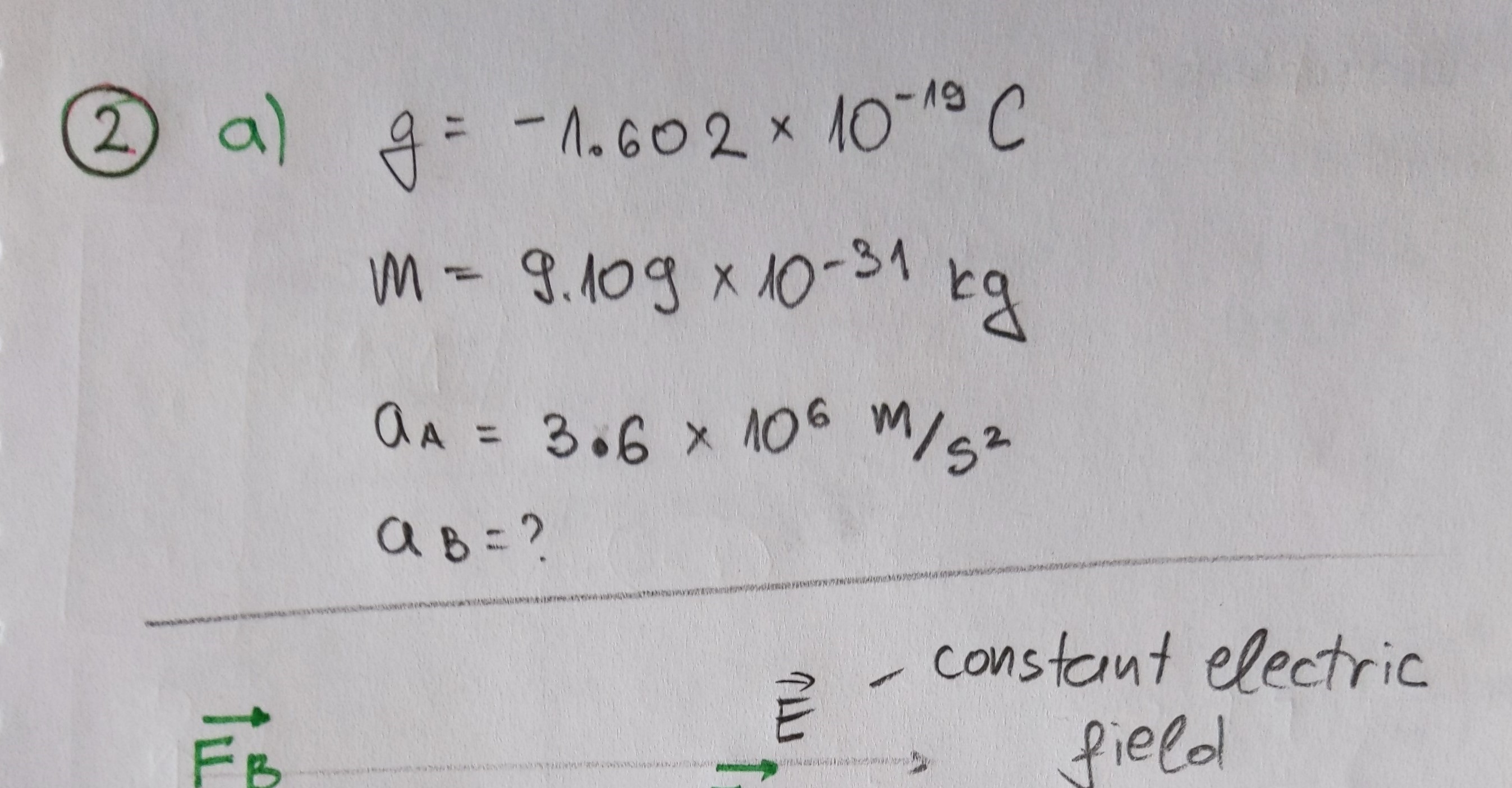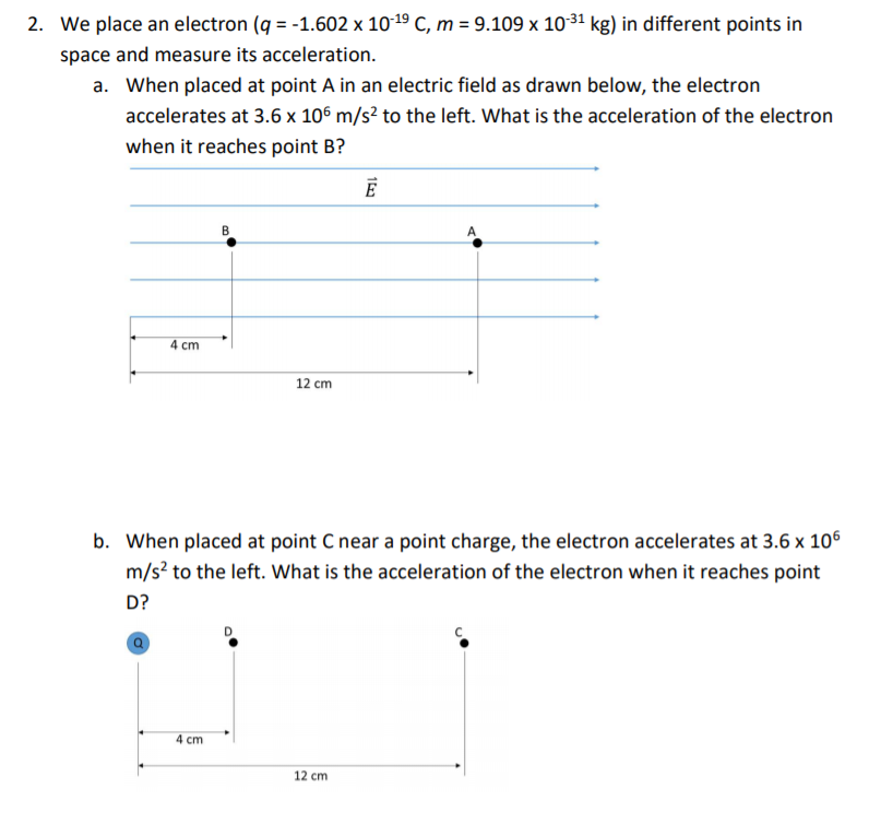 2. We place an electron (q = -1.602 x 10-19 C, m=9.109x10-31 kg) in...