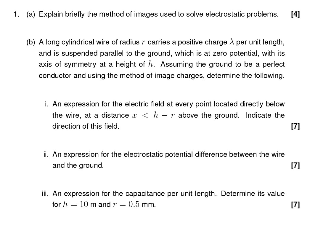 1. (a) Explain briefly the method of images used to solve electrost...