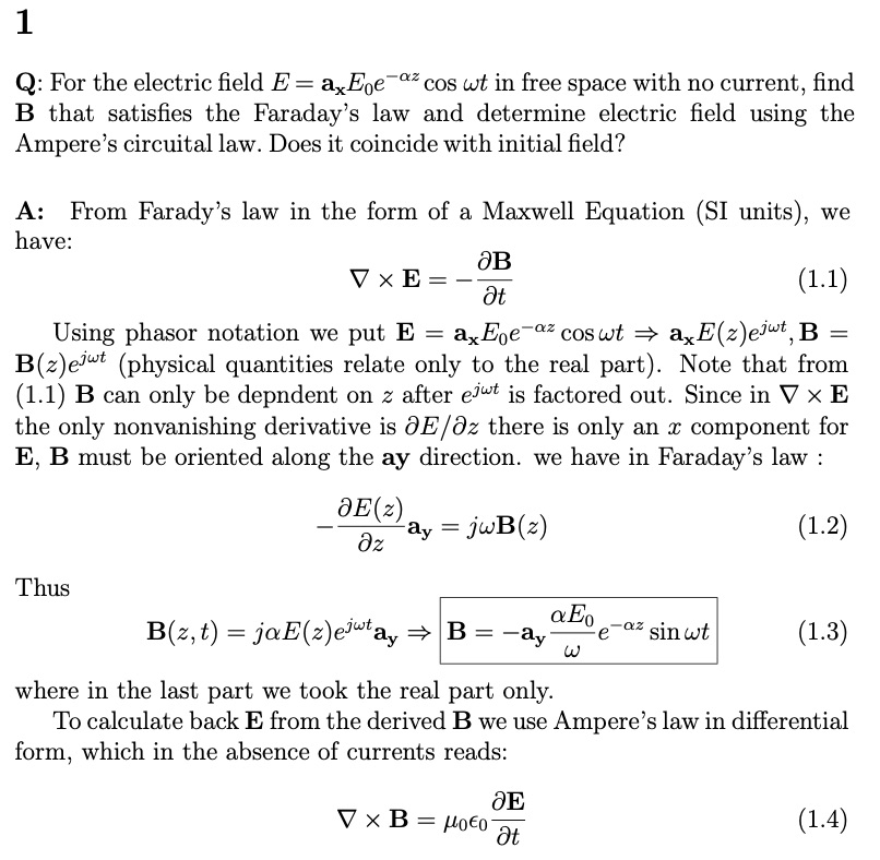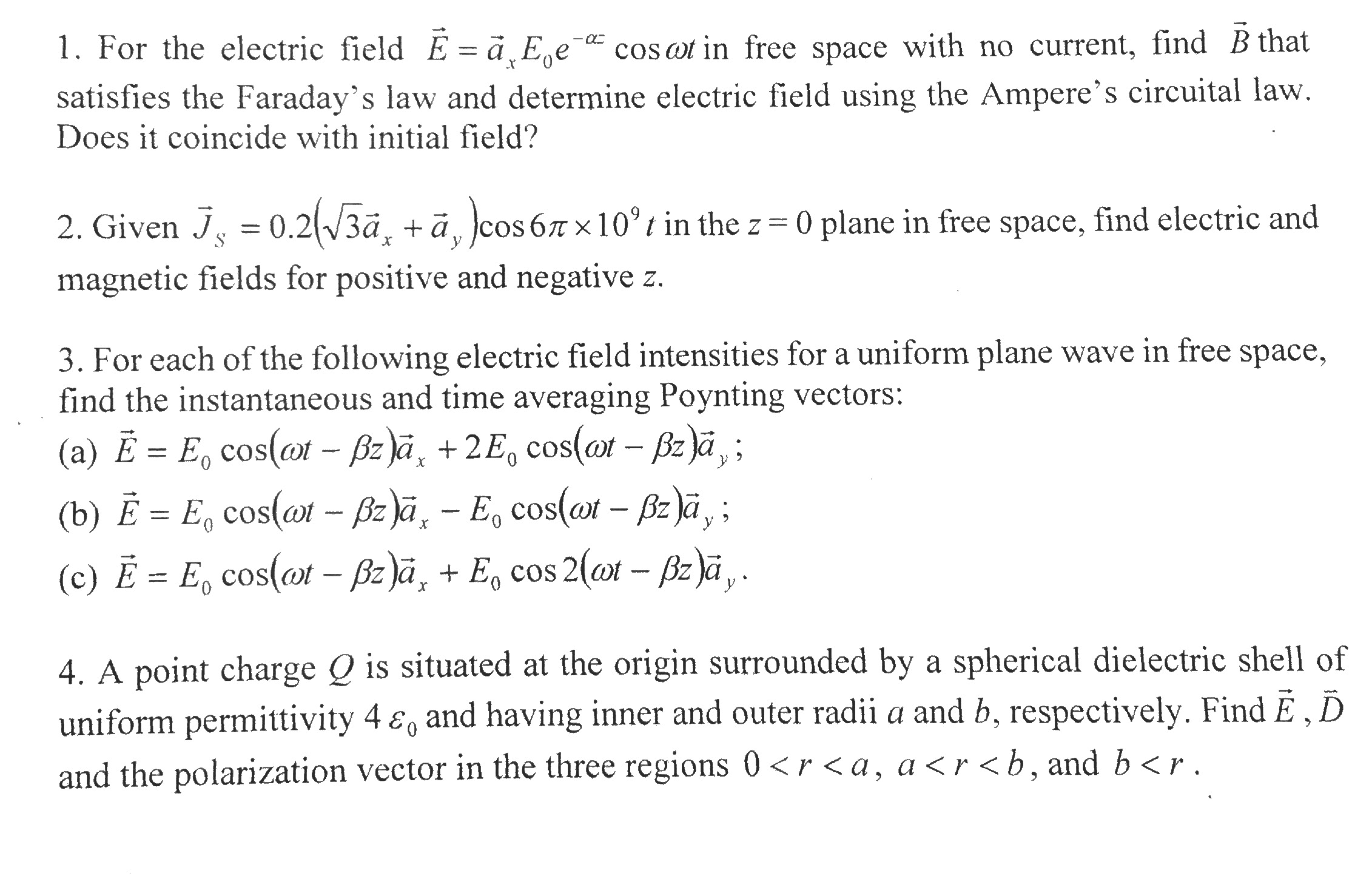1. For the electric field E=ãEe cos wt in free space with no curre...