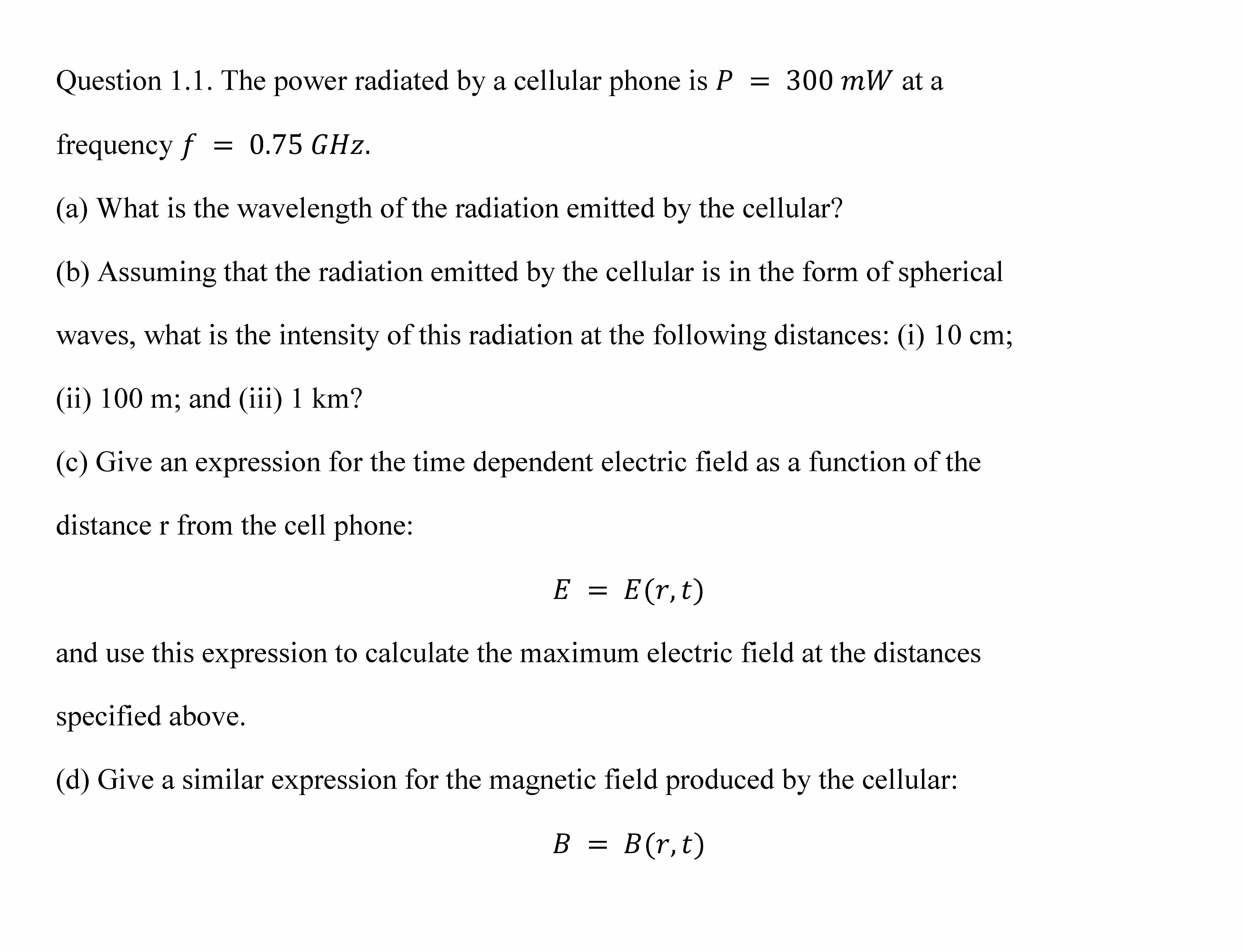 Question 1.1. The power radiated by a cellular phone is p = 300 mW...