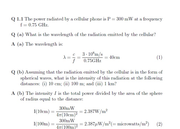 Question 1.1. The power radiated by a cellular phone is p = 300 mW ...
