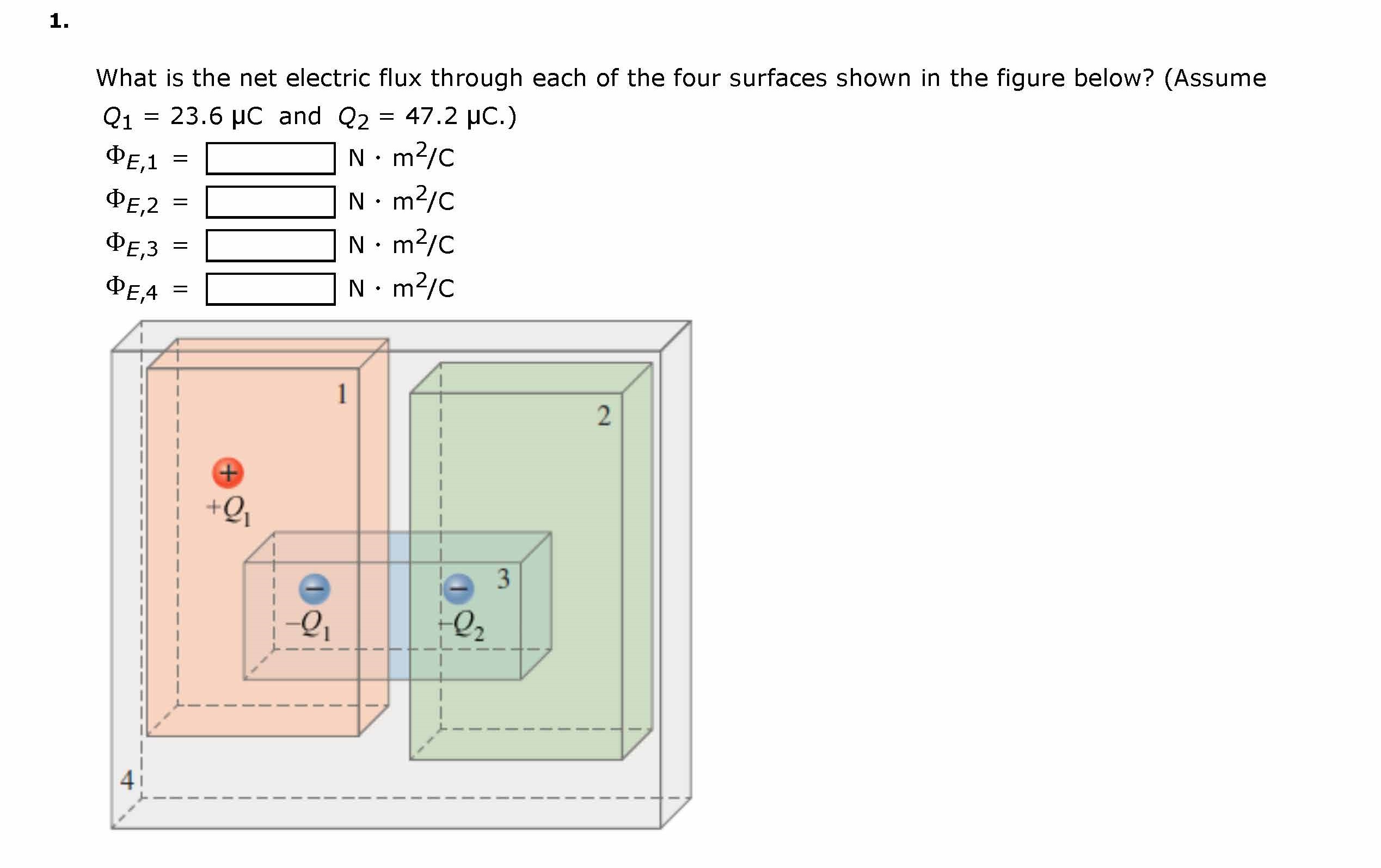 1. What is the net electric flux through each of the four surfaces...