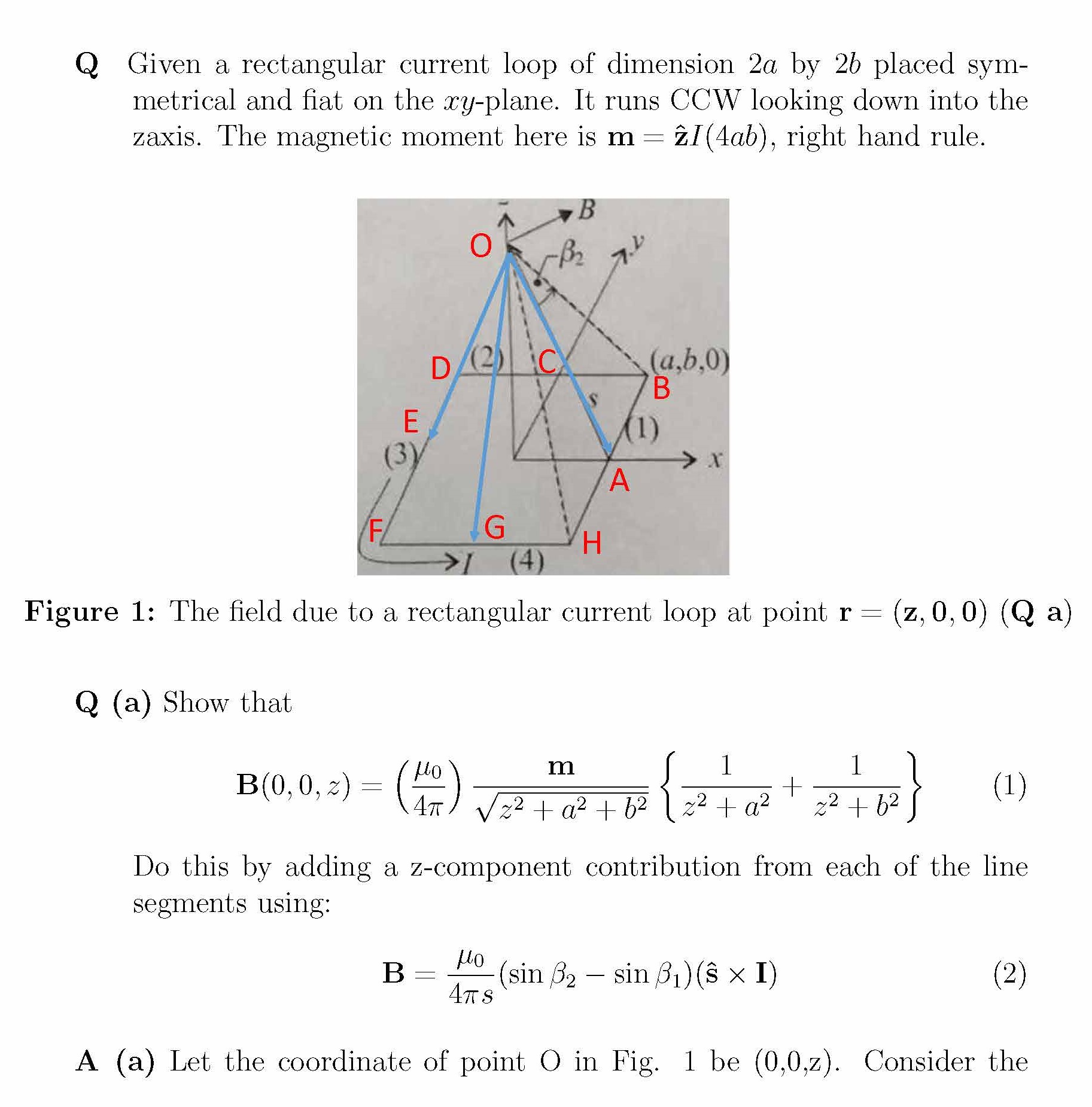 Given a rectangular current loop of dimension 2a by 2b placed symme...