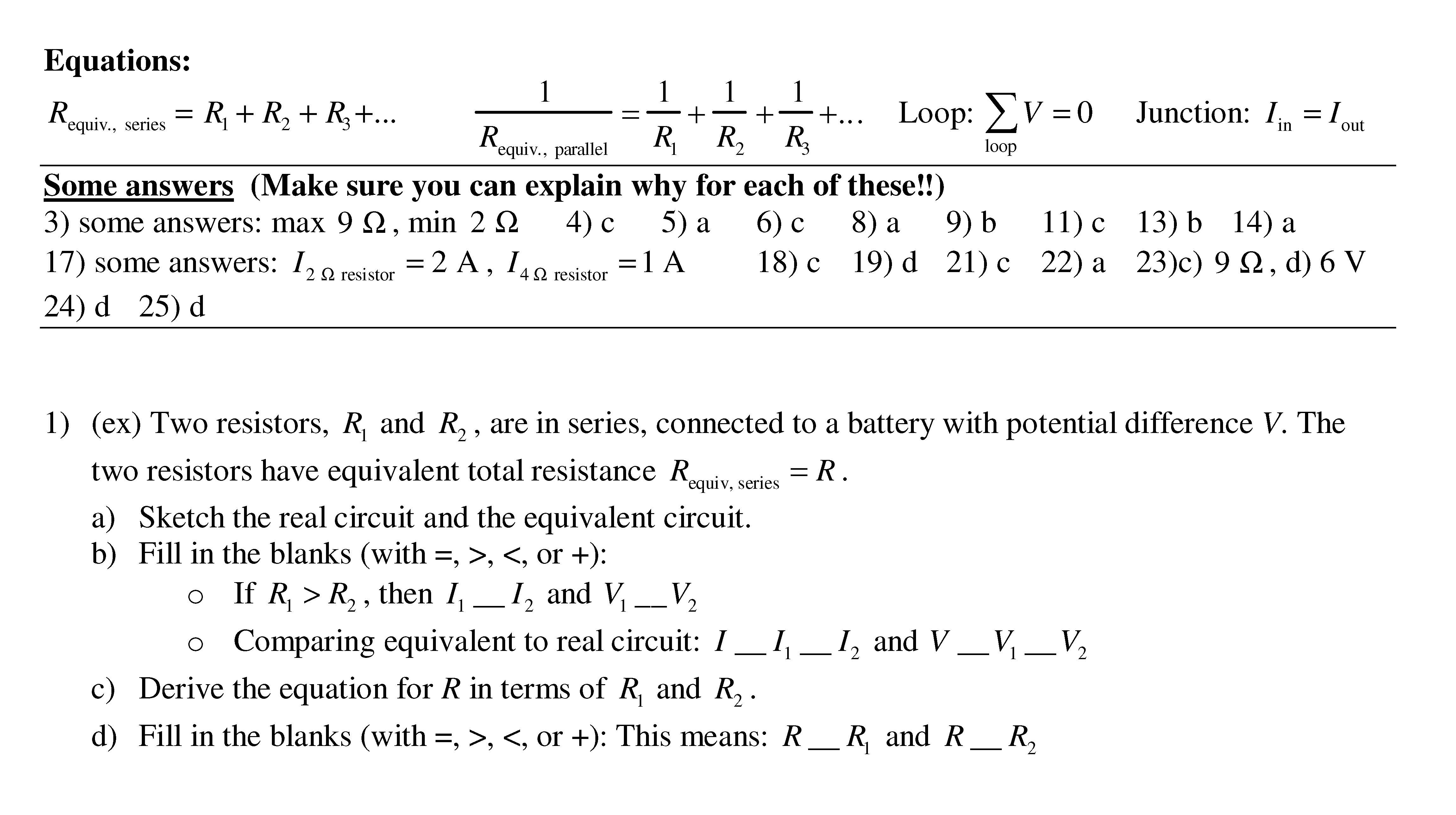 Equations: Requiv., series = R1 + R2 + R3+... 1 Requiv., paralle...