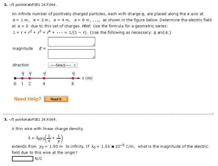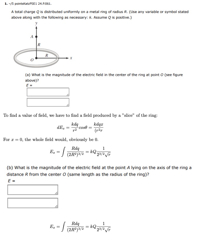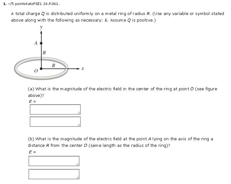 1. -/5 pointsKatzPSE1 24.P.061. A total charge Q is distributed un...