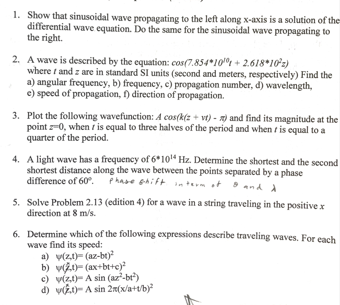 1. Show that sinusoidal wave propagating to the left along x-axis i...